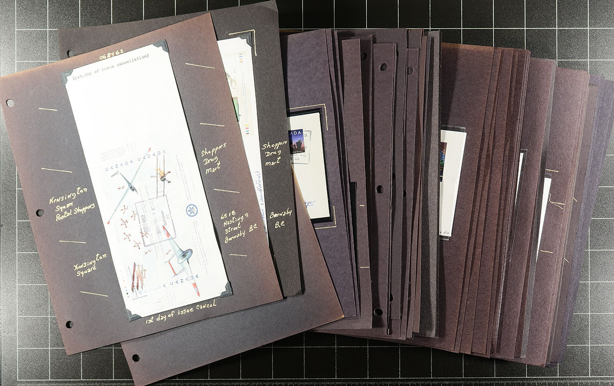 British Columbia Postmarks. Interesting collection of a few hundred Canada first day covers, all with British Columbia postmarks. The majority of covers range from 1996 to 1999, where the collector created 3-5 first day covers for most issues in period, all with what appears Lower Mainland postmarks from various postal outlets including cities New Westminster, Vancouver, Burnaby, North and West Vancouver, Langley, and Coquitlam. The majority of frankings are singles, but note a few plate blocks and souvenir sheets. A most interesting collection that would be missing from first day cover collections, and should pose some interest for modern BC postmarks collectors. Estimate =