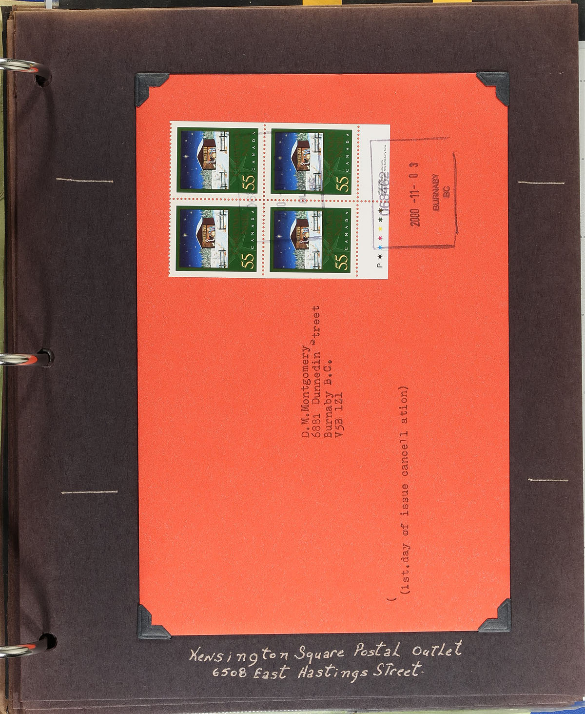Highly specialized collection of Christmas 2000 issues, covering Unitrade #s 1873-1875, all in hingeless mounts on over 50 well described pages, housed in a binder. The collection contains mint and used singles (including booklet stamps), matched set of mint and used plate blocks, booklets, used booklet panes, and a full sheet (folded), for every issue. The collection also includes 27 first day covers (single and plate block frankings), with one official cover for each issue, with the rest receiving Burnaby, B.C. postmarks from various postal outlets. Face value alone totals $180.00. A lovely collection that would be difficult to duplicate. 2024 Unitrade =