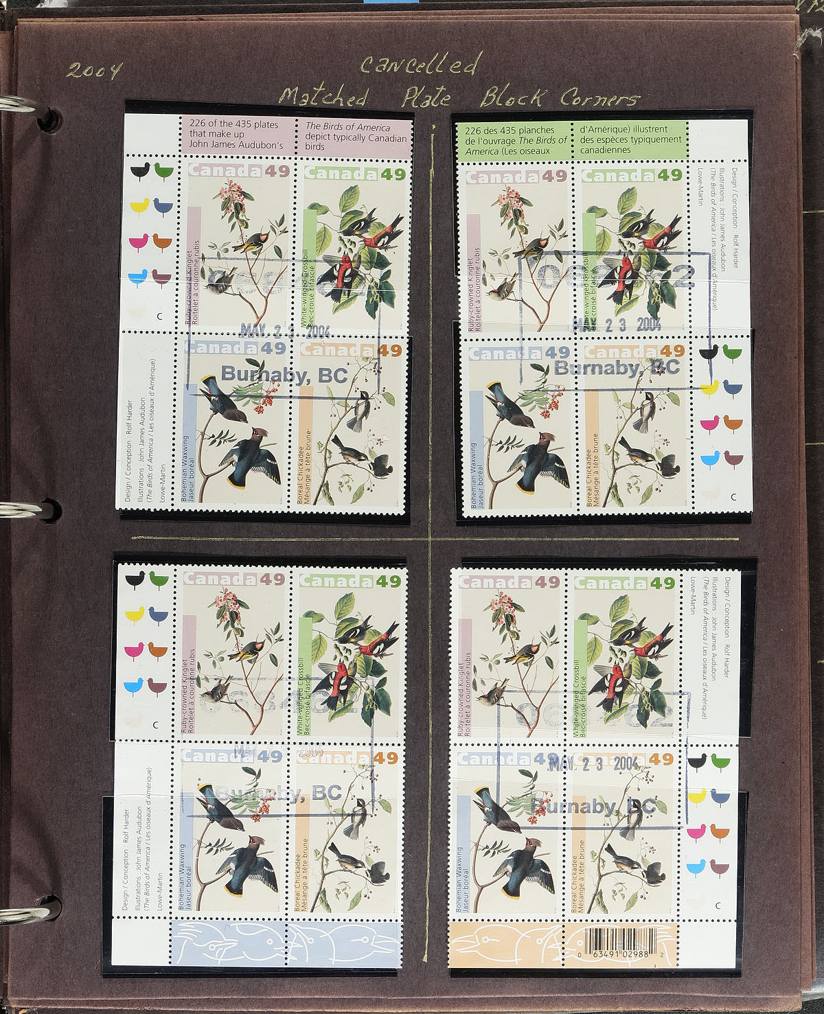 In-depth collection of primarily mint never hinged Canada, from January to June of 2004, covering Unitrade #s 2023-2044, all in hingeless mounts in over 50 well described pages, housed in a thick binder. The collection contains mint and used singles (including booklet stamps), multiples, matched set of plate blocks (including used sets), for some issues, along with a few souvenir sheets and sheetlets (mint and used), booklets (including used booklet panes), and first day covers. We note several match sets cataloguing $10.00 and up. Face value alone totals $190.00. A nice comprehensive collection that would be difficult to duplicate. 2024 Unitrade =