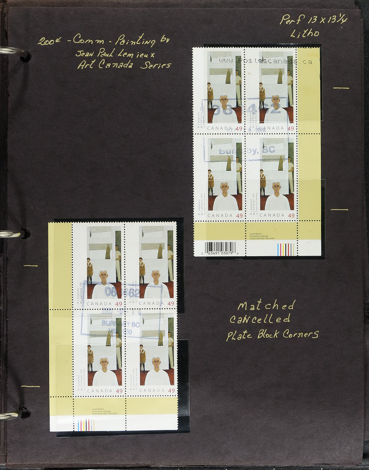 In-depth collection of primarily mint never hinged Canada, from July to December of 2004, covering Unitrade #s 2049-2052, 2056-2062, 2065-2082, all in hingeless mounts in over 50 well described pages, housed in a thick binder. The collection contains mint and used singles (including booklet stamps), multiples, matched set of plate blocks (including used sets), for some issues, along with definitive issues, a few souvenir sheets and sheetlets (mint and used), booklets (including used booklet panes), and first day covers. We note several match sets cataloguing $10.00 and up. Face value alone totals $174.00. A nice comprehensive collection that would be difficult to duplicate. 2024 Unitrade =
