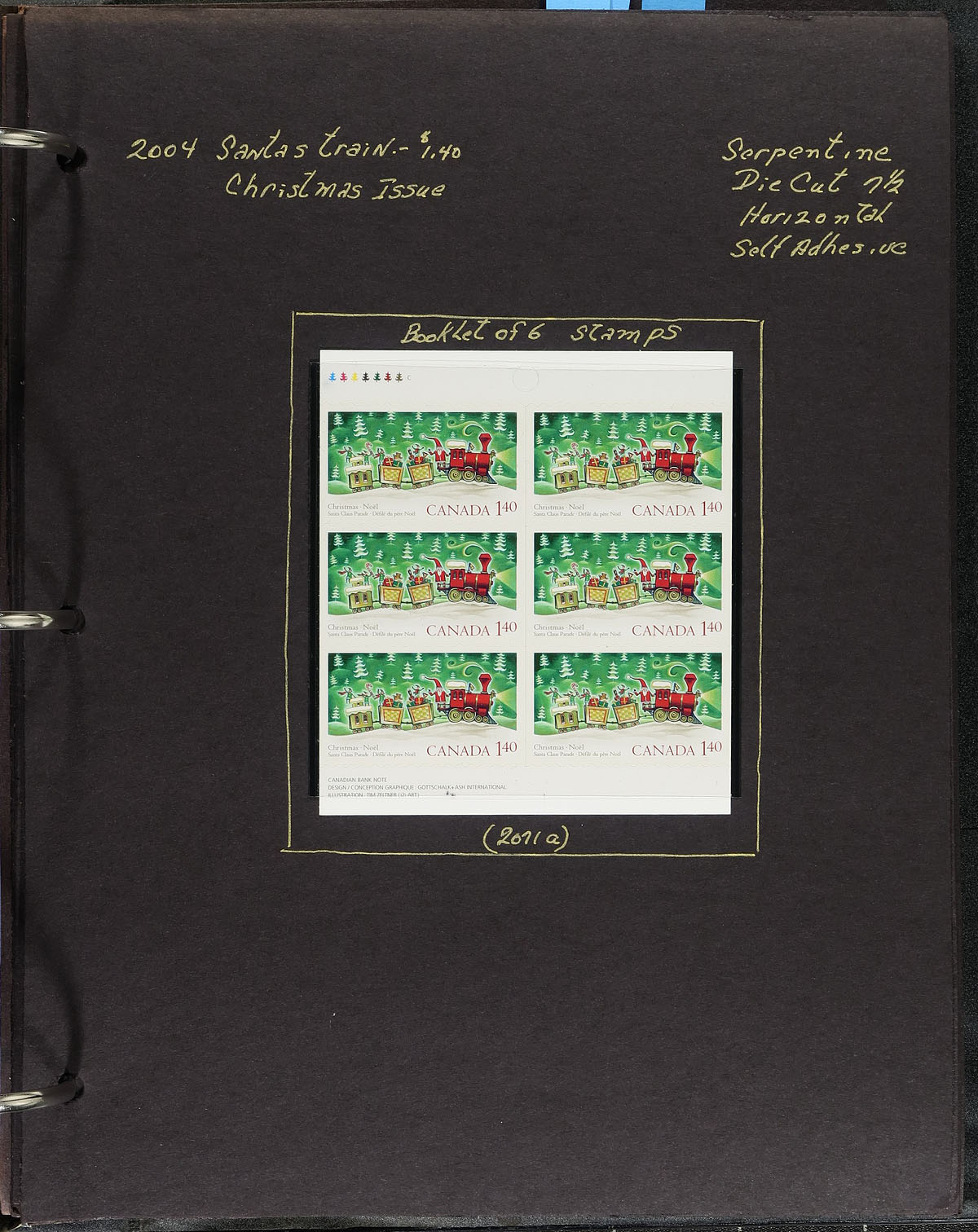 In-depth collection of primarily mint never hinged Canada, from July to December of 2004, covering Unitrade #s 2049-2052, 2056-2062, 2065-2082, all in hingeless mounts in over 50 well described pages, housed in a thick binder. The collection contains mint and used singles (including booklet stamps), multiples, matched set of plate blocks (including used sets), for some issues, along with definitive issues, a few souvenir sheets and sheetlets (mint and used), booklets (including used booklet panes), and first day covers. We note several match sets cataloguing $10.00 and up. Face value alone totals $174.00. A nice comprehensive collection that would be difficult to duplicate. 2024 Unitrade =