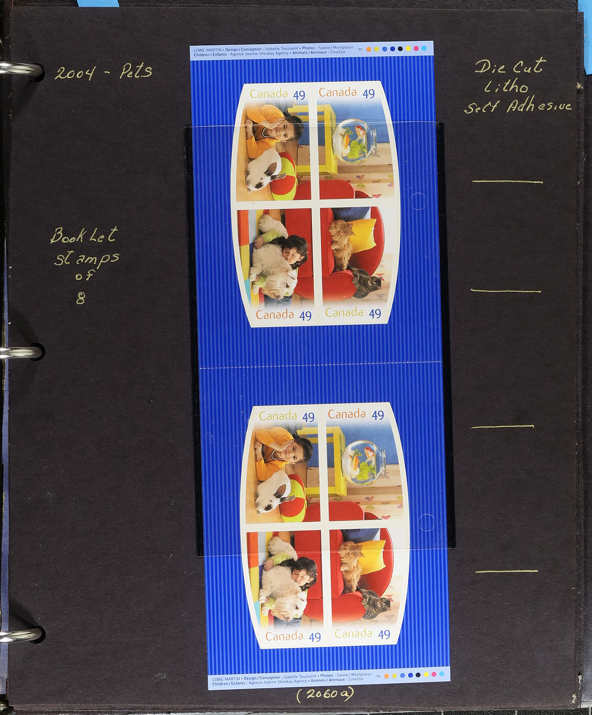 In-depth collection of primarily mint never hinged Canada, from July to December of 2004, covering Unitrade #s 2049-2052, 2056-2062, 2065-2082, all in hingeless mounts in over 50 well described pages, housed in a thick binder. The collection contains mint and used singles (including booklet stamps), multiples, matched set of plate blocks (including used sets), for some issues, along with definitive issues, a few souvenir sheets and sheetlets (mint and used), booklets (including used booklet panes), and first day covers. We note several match sets cataloguing $10.00 and up. Face value alone totals $174.00. A nice comprehensive collection that would be difficult to duplicate. 2024 Unitrade =