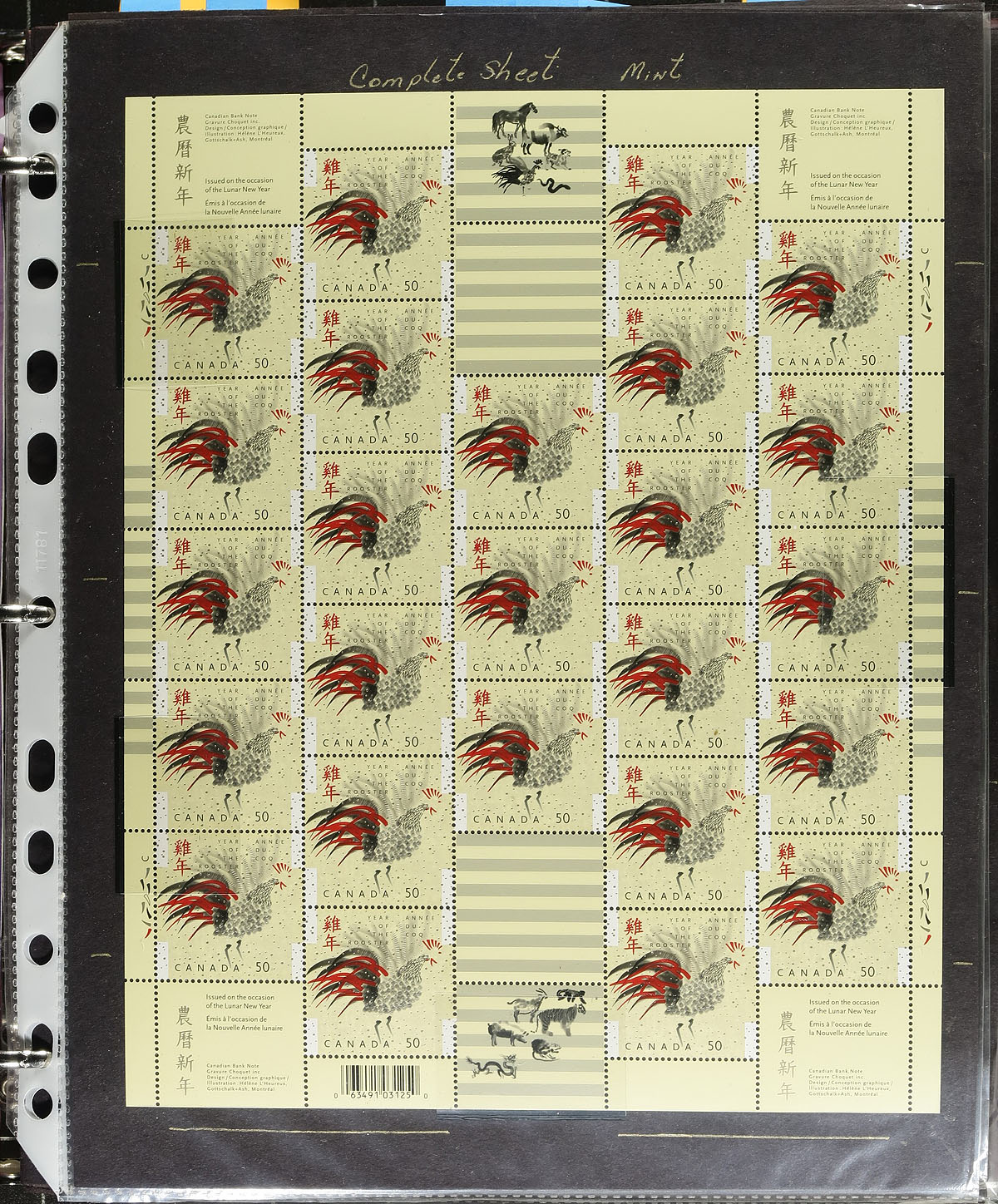 In-depth collection of primarily mint never hinged Canada, from January to May of 2005, covering Unitrade #s 2083-2108, all in hingeless mounts in over 50 well described pages, housed in a thick binder. The collection contains mint and used singles (including booklet stamps), multiples, matched set of plate blocks (including used sets), for some issues, along with a few souvenir sheets and sheetlets (mint and used), booklets (including used booklet panes), and first day covers. We note several match sets cataloguing $10.00 and up. Face value alone totals $209.00. A nice comprehensive collection that would be difficult to duplicate. 2024 Unitrade =