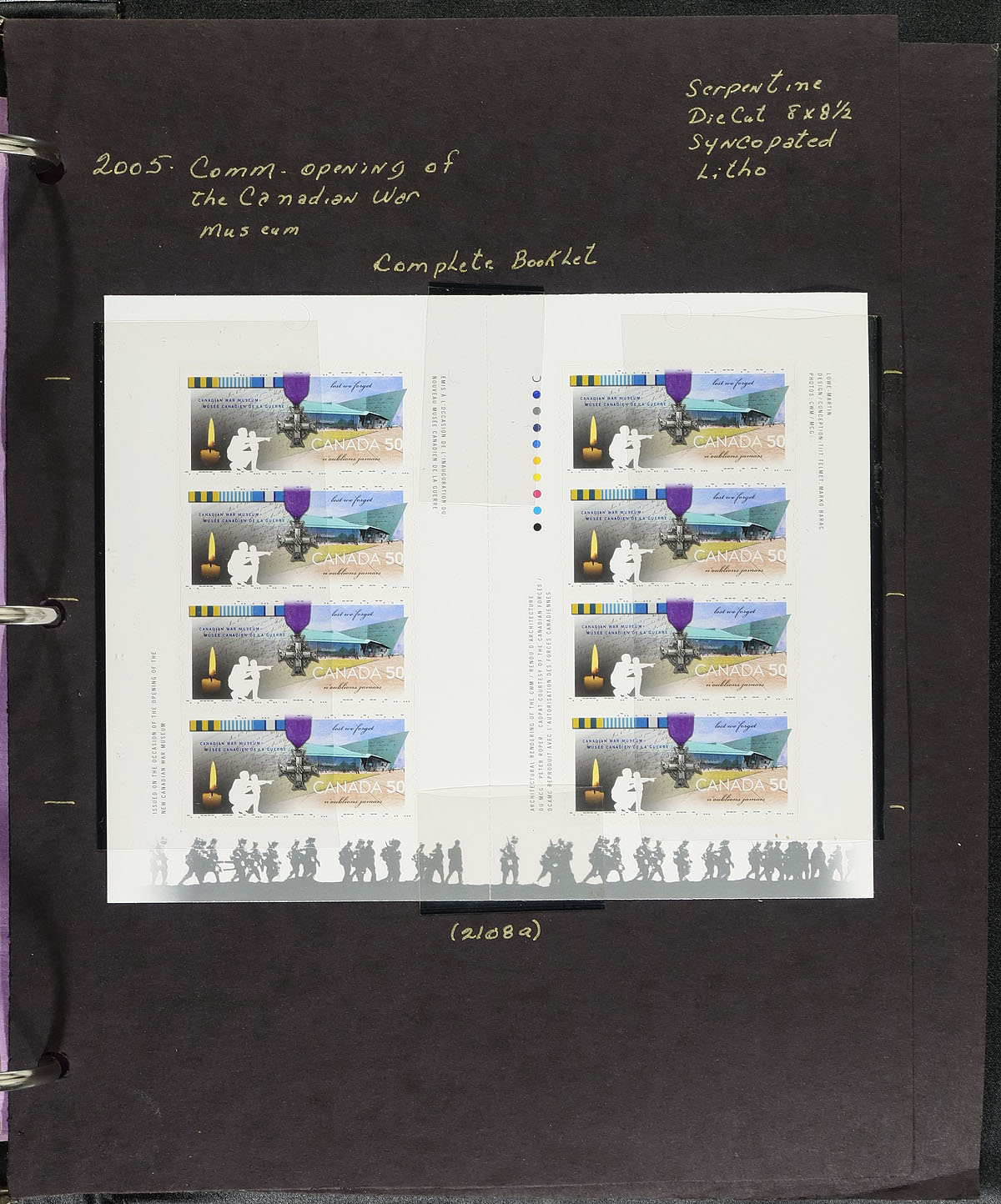 In-depth collection of primarily mint never hinged Canada, from January to May of 2005, covering Unitrade #s 2083-2108, all in hingeless mounts in over 50 well described pages, housed in a thick binder. The collection contains mint and used singles (including booklet stamps), multiples, matched set of plate blocks (including used sets), for some issues, along with a few souvenir sheets and sheetlets (mint and used), booklets (including used booklet panes), and first day covers. We note several match sets cataloguing $10.00 and up. Face value alone totals $209.00. A nice comprehensive collection that would be difficult to duplicate. 2024 Unitrade =