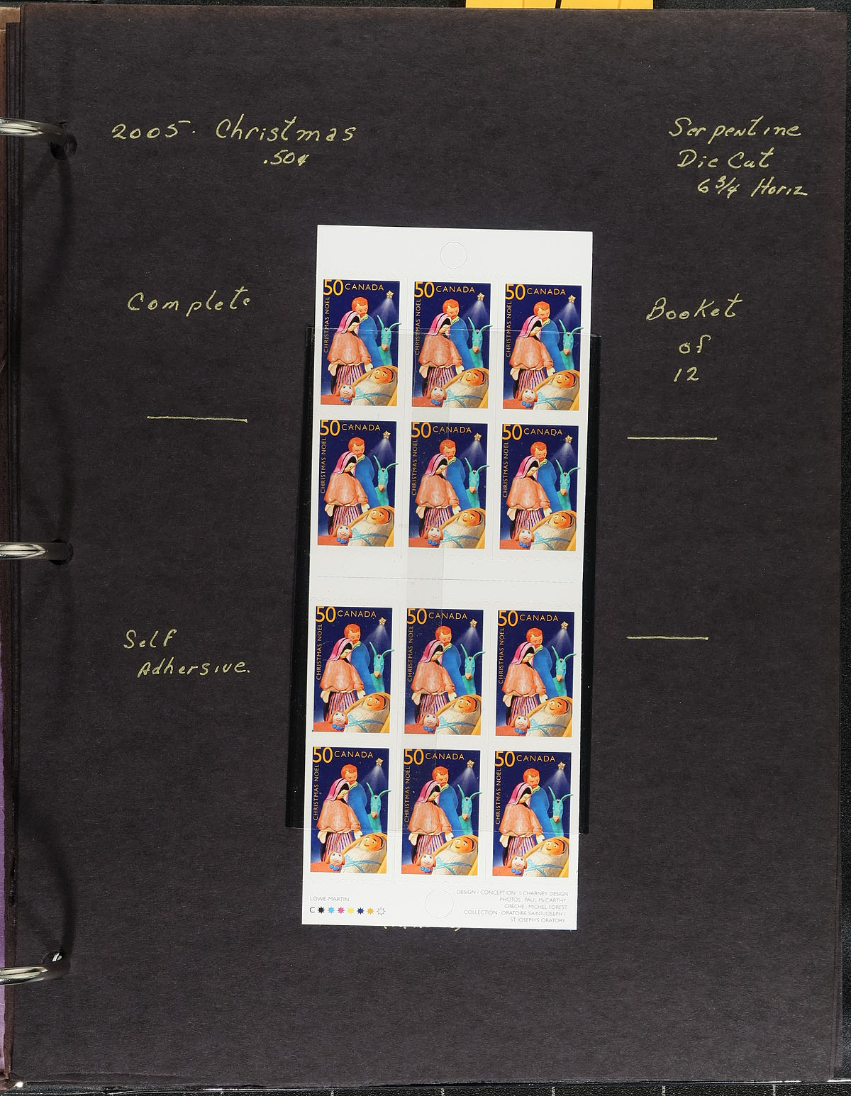 In-depth collection of primarily mint never hinged Canada, from May to December of 2004, covering Unitrade #s 2109-2117, 2122-2139, all in hingeless mounts in over 50 well described pages, housed in a thick binder. The collection contains mint and used singles (including booklet stamps), multiples, matched set of plate blocks (including used sets), for some issues, along with definitive issues, a few souvenir sheets and sheetlets (mint and used), booklets (including used booklet panes), and first day covers. We note several match sets cataloguing $10.00 and up. Face value alone totals $238.00. A nice comprehensive collection that would be difficult to duplicate. 2024 Unitrade =