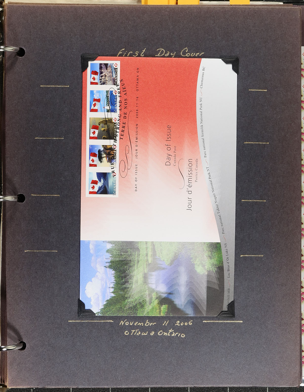 In-depth collection of primarily mint never hinged "Flower" and "First Class" definitives, 2006, covering Unitrade #s 2187-2200, all in hingeless mounts in over 50 well described pages, housed in a binder. The collection contains mint and used singles (including booklet stamps), booklets, mint and used souvenir sheets, coil singles, pairs, and strips of 4, along with roughly 30 first day covers (appearing to have Lower Mainland B.C. postmarks from a variety of outlets). We note some better items cataloguing $15.00 and up, including #2187 coil uncut press panel of 100 (c.v. $170.00). Face value alone totals $283.00 (includes 171x "P" stamps). A nice comprehensive collection that would be difficult to duplicate. 2024 Unitrade =