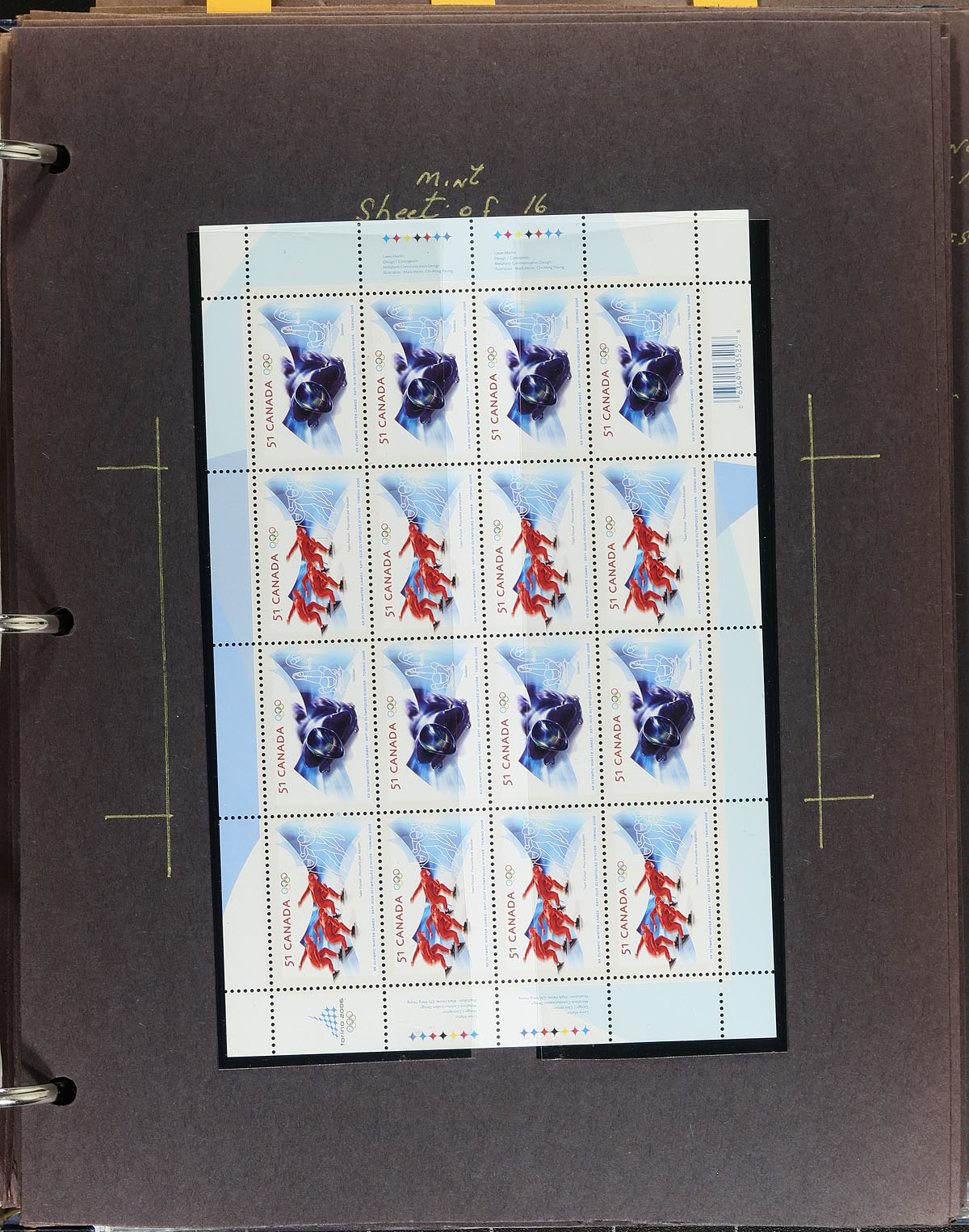 In-depth collection of primarily mint never hinged Canada, from January to May of 2006, covering Unitrade #s 2140-2156, all in hingeless mounts in over 50 well described pages, housed in a thick binder. The collection contains mint and used singles (including booklet stamps), multiples, matched set of plate blocks (including used sets), for some issues, along with a few souvenir sheets and sheetlets (mint and used), booklets (including used booklet panes), and first day covers. We note several match sets cataloguing $10.00 and up. Face value alone totals $174.00. A nice comprehensive collection that would be difficult to duplicate. 2024 Unitrade =