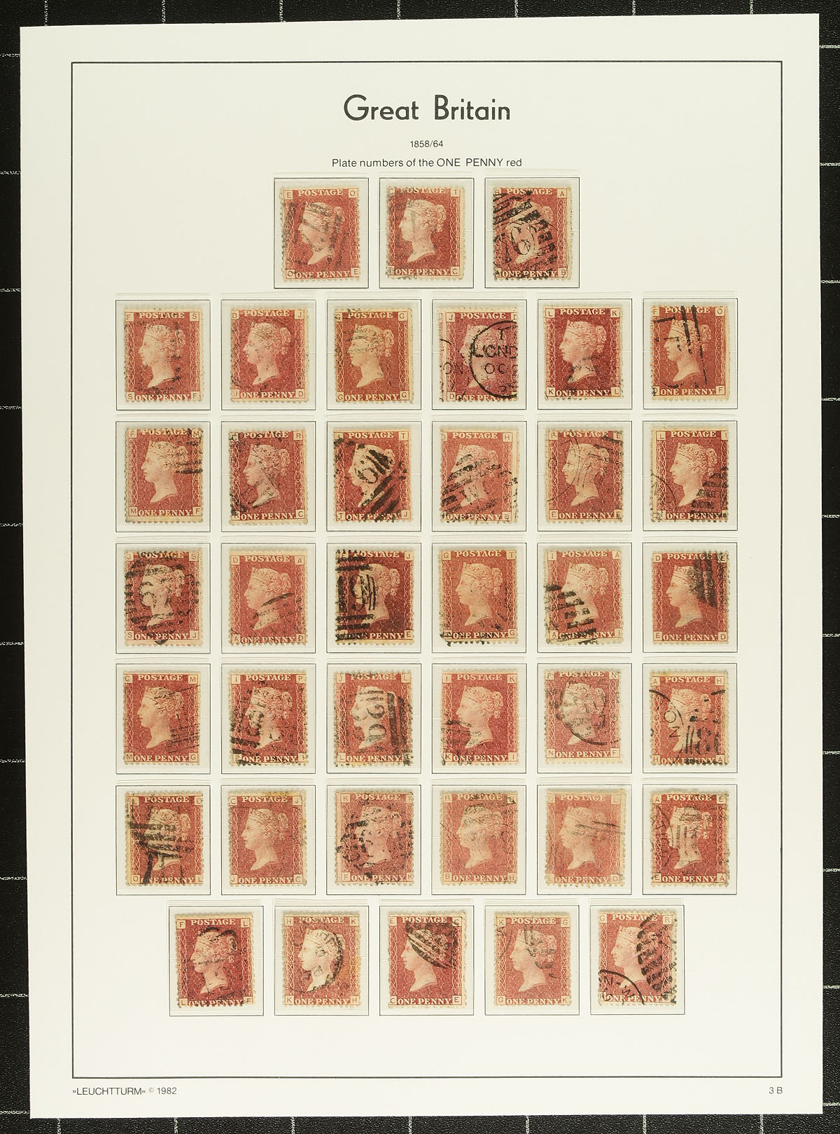 Plate Number Collection. A stunning collection of 1864-1879 issued Penny Reds, all laid and arranged by plate number, on Lighthouse hingeless pages. A near complete run, missing only the elusive Plates #77 and 225. The condition seems well above average, but expect the odd minor fault (but also noted a few mint examples, and several nice postmarks). A great opportunity to acquire this run of plates, which can take considerable time to assemble. Estimate =