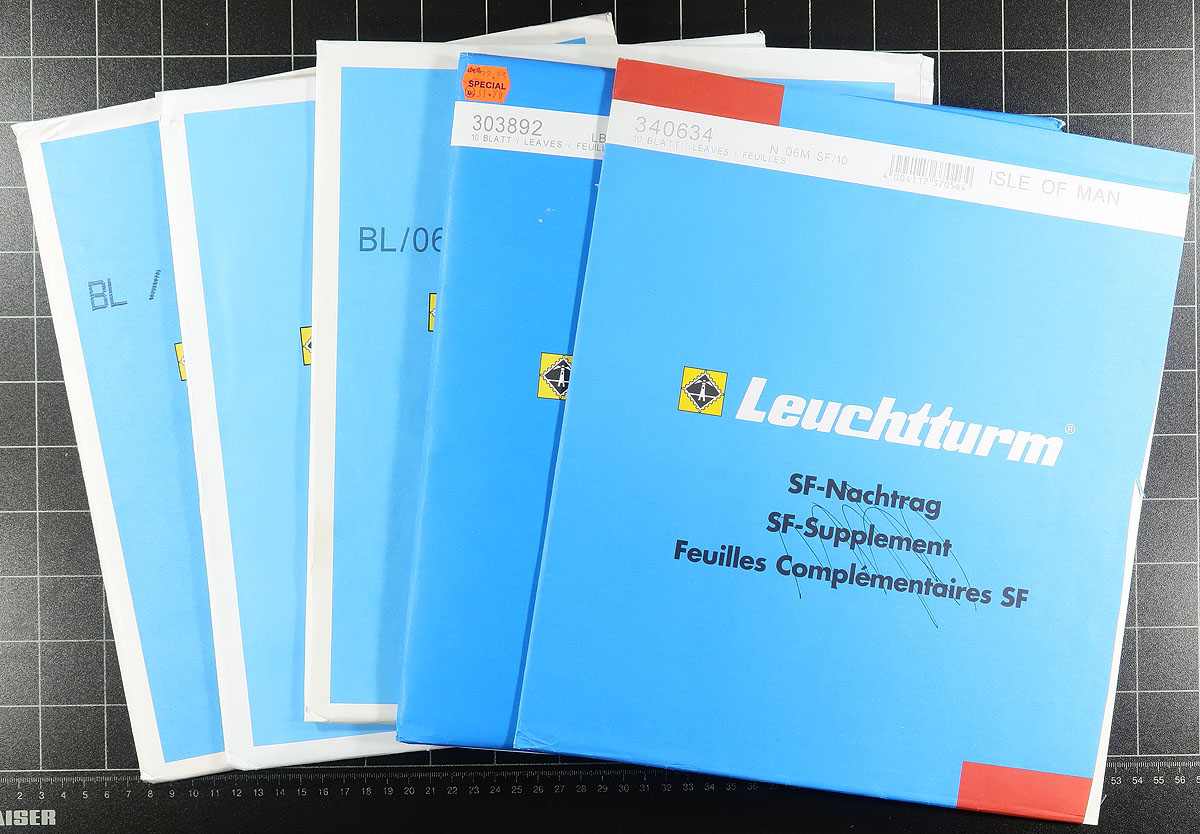Estate Bankers Box Offering #1. Group of gently used (or unused) group of philatelic supplies, as part of a local estate offering. This box includes (in no particular order). 1) Two Unisafe brand FDC albums. 2) Unused Minkus brand "Canada and Provinces" album, with pages to 1967 (nice to set a limit to 100 years of Confederation!). 3) Binder with 27x like-new manila stocksheets. 4) Brand new package of 100x heavy weight quadrille 3-ring hole punched pages. 5) Several packages of blank / hingeless pages for Lighthouse albums (some with Australia / Channel Islands headers. 6) About 10 partial packages of large-size Lighthouse clear mounts of various sizes. 7) Brand new package (25) of Stanley Gibbons black "Nubian Standard" pages. 8) Padded blue FDC album. 9) Five misc partial packages of stamp hinges (most near full). 10) Deluxe 3-ring album (Lighthouse style), but not marked. A nice diverse offering, which would add up significantly in original retail cost. Estimate =