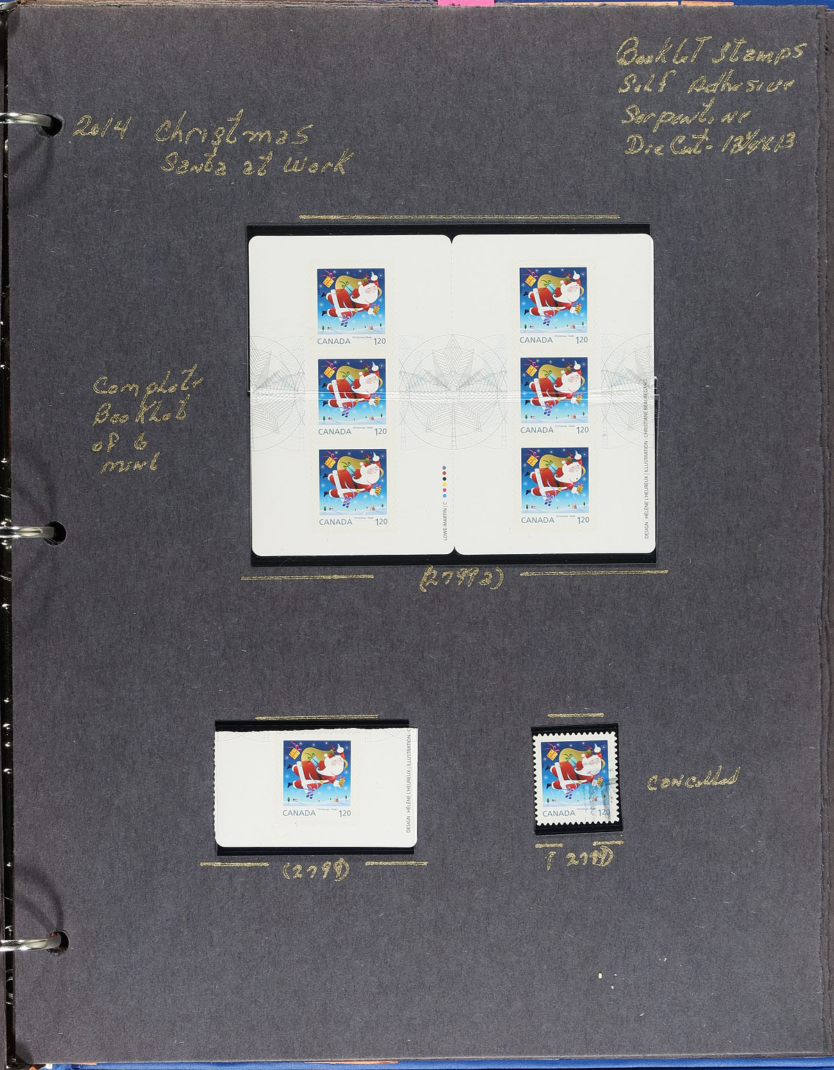 Lovely collection of primarily mint never hinged "Christmas" issues, October 2014, covering Unitrade #s 2796-2800, all in hingeless mounts in roughly 10 well described pages. The collection primarily contains complete booklets, part panes, mint and used booklet stamps, along with a few souvenir sheets and first day covers. Face value alone totals $158.00 (including 71x "P" stamps). A nice lot for all collectors. 2024 Unitrade =