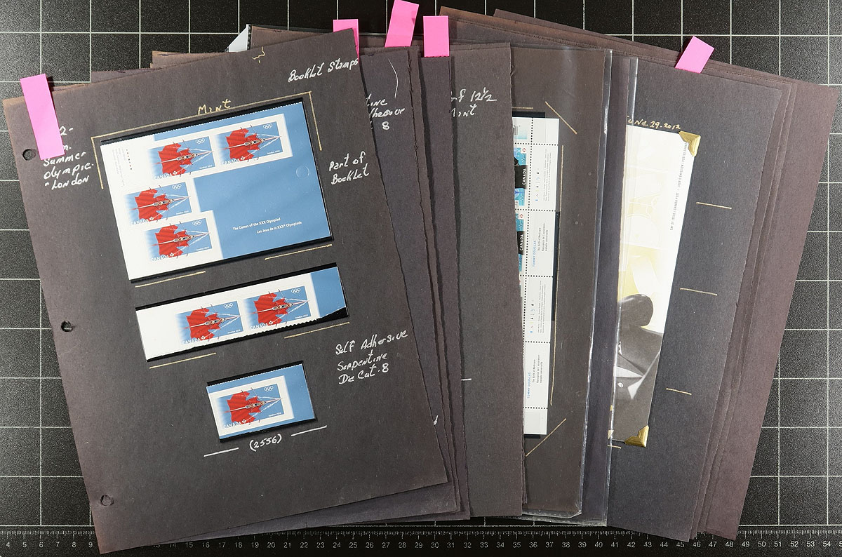Lovely collection of primarily mint never hinged Canada, June 2012, covering Unitrade #s 2556-2557, all in hingeless mounts in roughly 10 well described pages. The collection contains mint and used stamps, booklets, souvenir sheets and sheetlets, matched set of plate blocks, and a few first day covers. Face value alone totals $102.00 (counting 83x "P" stamps). A nice lot for all collectors. 2024 Unitrade =