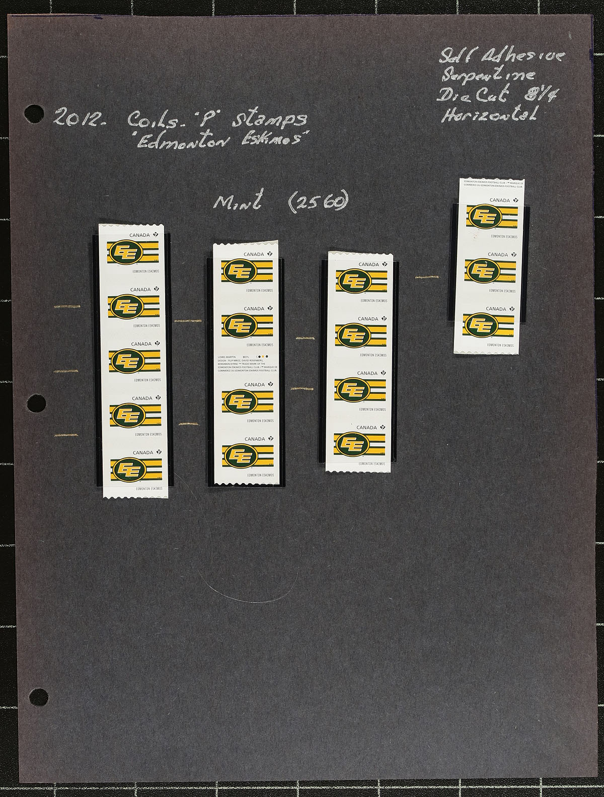 Valuable collection of mint never hinged "CFL Teams", June 2012, covering Unitrade #s 2558-2566, all in hingeless mounts in roughly 30 well described pages. The collection contains primarily coil singles, pairs, and strips (typically up to 30 and more stamps per issue), along with a few souvenir sheets. Face value alone totals an impressive $507.00 (including 409x "P" stamps). A lovely lot with multiple purposes. 2024 Unitrade =