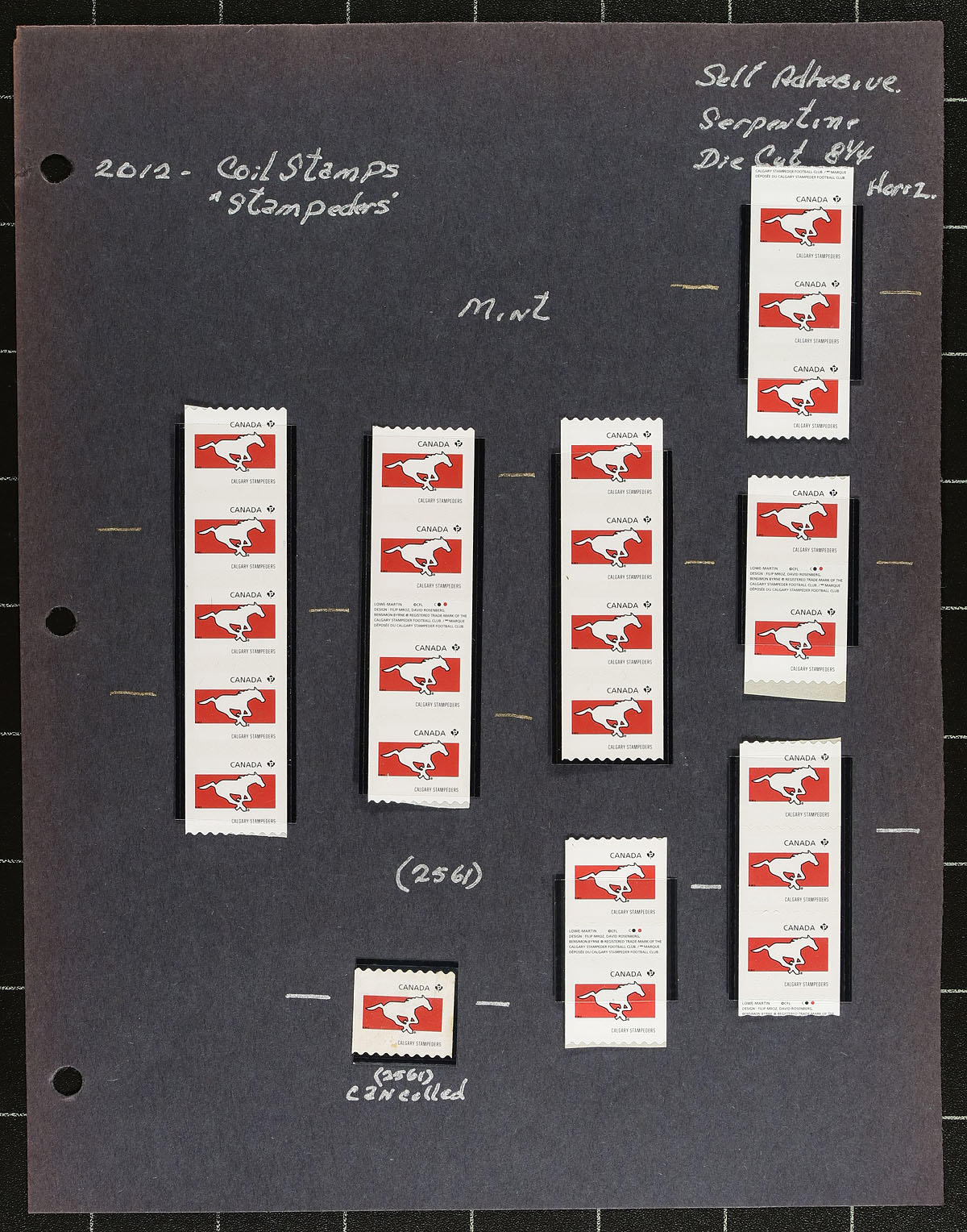 Valuable collection of mint never hinged "CFL Teams", June 2012, covering Unitrade #s 2558-2566, all in hingeless mounts in roughly 30 well described pages. The collection contains primarily coil singles, pairs, and strips (typically up to 30 and more stamps per issue), along with a few souvenir sheets. Face value alone totals an impressive $507.00 (including 409x "P" stamps). A lovely lot with multiple purposes. 2024 Unitrade =