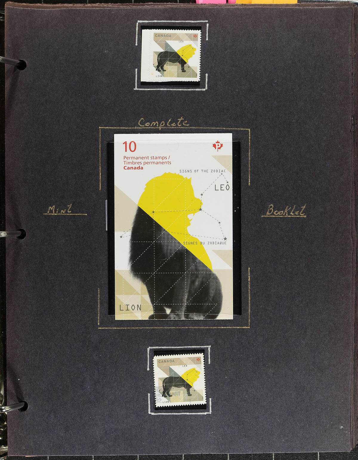 In-depth collection of primarily mint never hinged "Signs of the Zodiac" booklet issues, June 2011, covering Unitrade #s 2445, 2449-2452, all in hingeless mounts in roughly 50 well pages housed in a binder. The collection contains mint and used singles, and complete booklets, along with a mint souvenir sheetst, and roughly 30 first day covers (mix of Official and Lower Mainland B.C. postmarks). Face value alone totals $279.00 (including 226x "P" stamps). A nice group of these very popular issues. 2024 Unitrade =