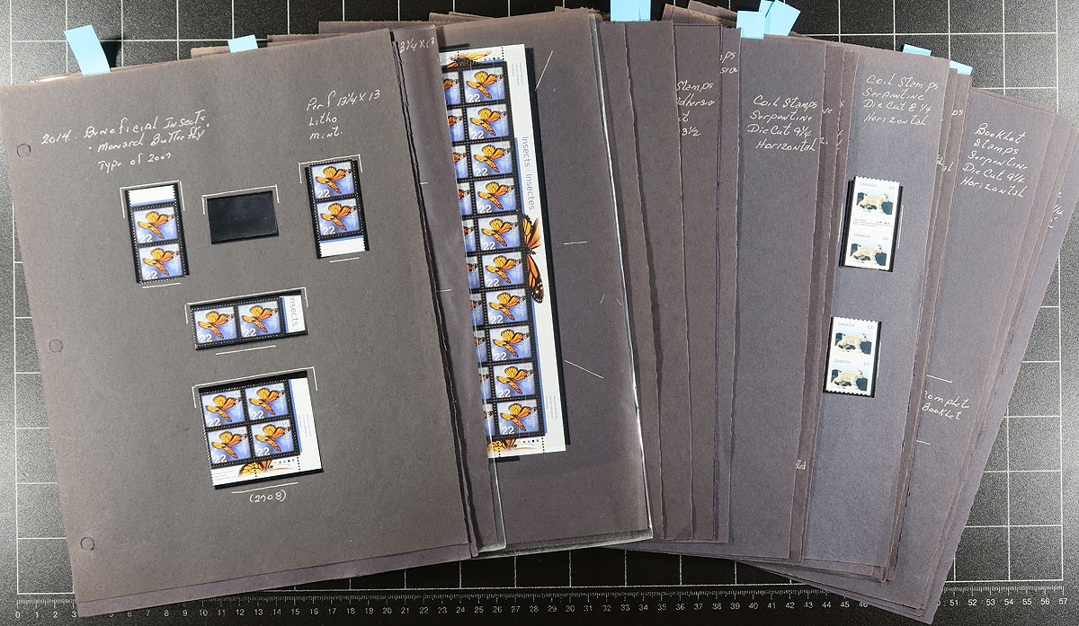 Valuable collection of primarily mint never hinged "Baby Wildlife" definitives, March 2014, covering Unitrade #s 2708-2714, all in hingeless mounts in roughly 20 well described pages. The collection primarily contains mint coil singles, pairs, strips of 4, booklet panes, mint and used souvenir sheet, and a few first day covers. The collection also contains #2708 "Insect" definitives, containing mint and used singles, plate blocks, sheetlets, and more. We note many items cataloguing $15.00 and up. Face value alone totals $322.00 (including 28x "P" stamps and noting several denominations $1.00 and up). A nice group for the definitive collector. 2024 Unitrade =