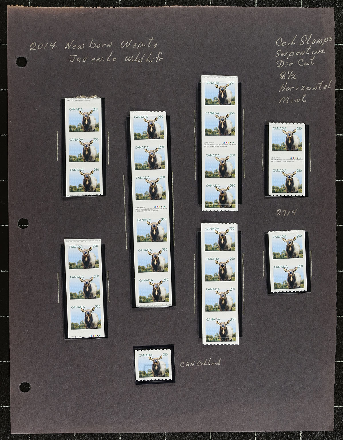 Valuable collection of primarily mint never hinged "Baby Wildlife" definitives, March 2014, covering Unitrade #s 2708-2714, all in hingeless mounts in roughly 20 well described pages. The collection primarily contains mint coil singles, pairs, strips of 4, booklet panes, mint and used souvenir sheet, and a few first day covers. The collection also contains #2708 "Insect" definitives, containing mint and used singles, plate blocks, sheetlets, and more. We note many items cataloguing $15.00 and up. Face value alone totals $322.00 (including 28x "P" stamps and noting several denominations $1.00 and up). A nice group for the definitive collector. 2024 Unitrade =