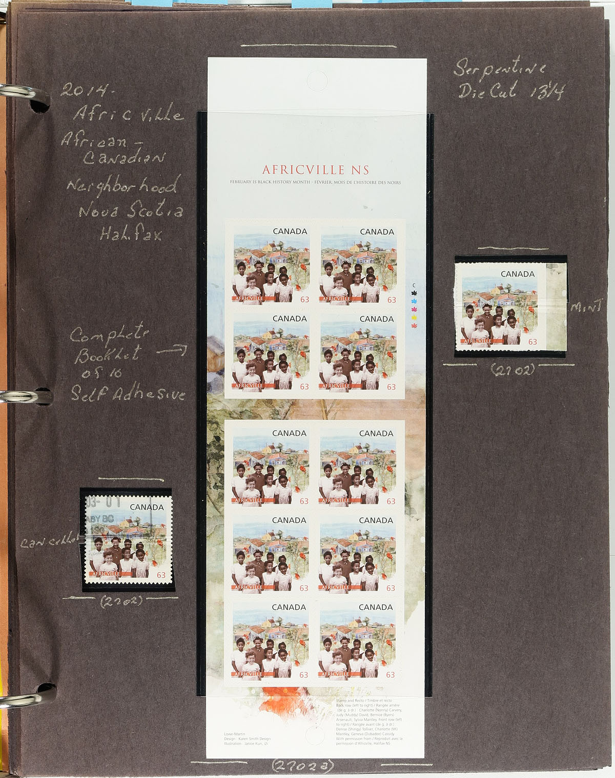 Lovely collection of primarily mint never hinged Canada, from January to February 2014, covering Unitrade #s 2702-2707, all in hingeless mounts in roughly 15 well described pages, housed in a binder. The collection contains primarily booklets, part booklet panes, and mint and used singles, along with a few souvenir sheets and first day covers. We note a few items cataloguing $10.00 and up. Face value alone totals $95.00. A nice group for all collectors. 2024 Unitrade =