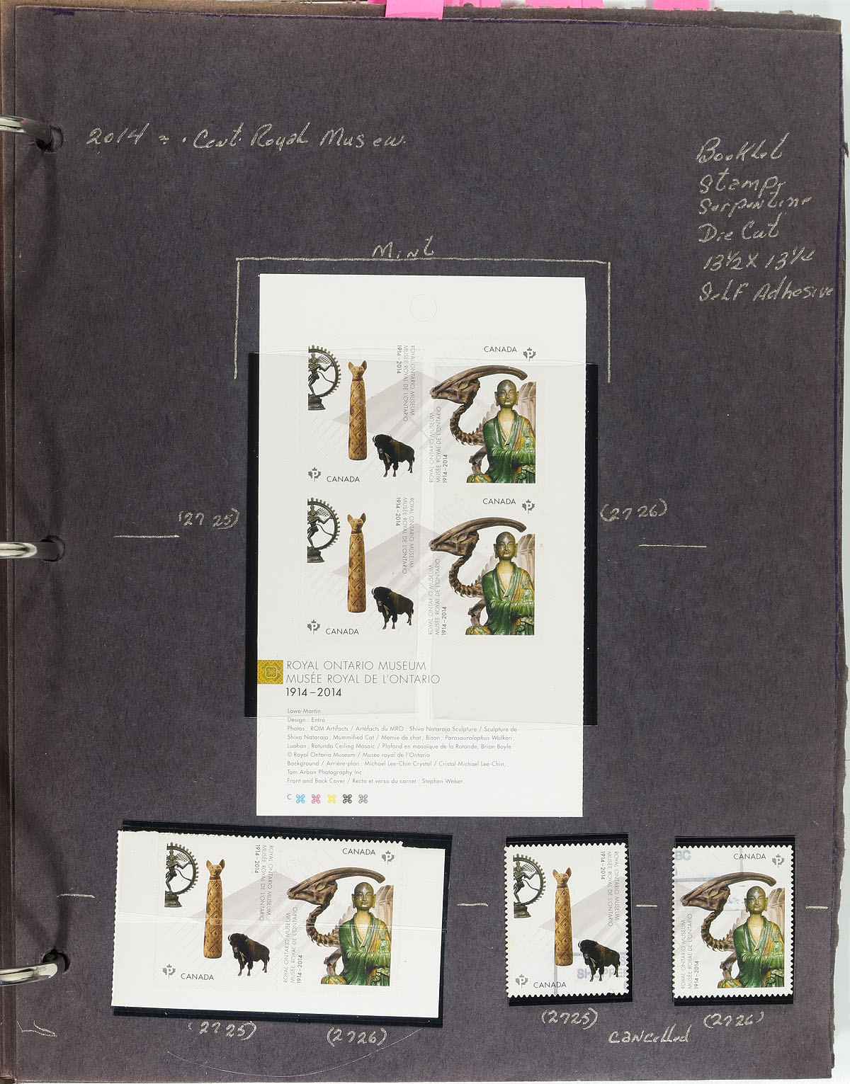 Collection of primarily mint never hinged Canada, from April to May 2014, covering Unitrade #s 2724-2738, all in hingeless mounts in roughly 15 well described pages, housed in a binder. The collection contains mint and used stamps (including booklet issues), booklets, souvenir sheets, coil singles, pairs, and strips of 4, and a few first day covers. We note a few items cataloguing $10.00 and up.. Face value alone totals $196.00 (including 124x "P" stamps). A nice lot for all collectors. 2024 Unitrade =