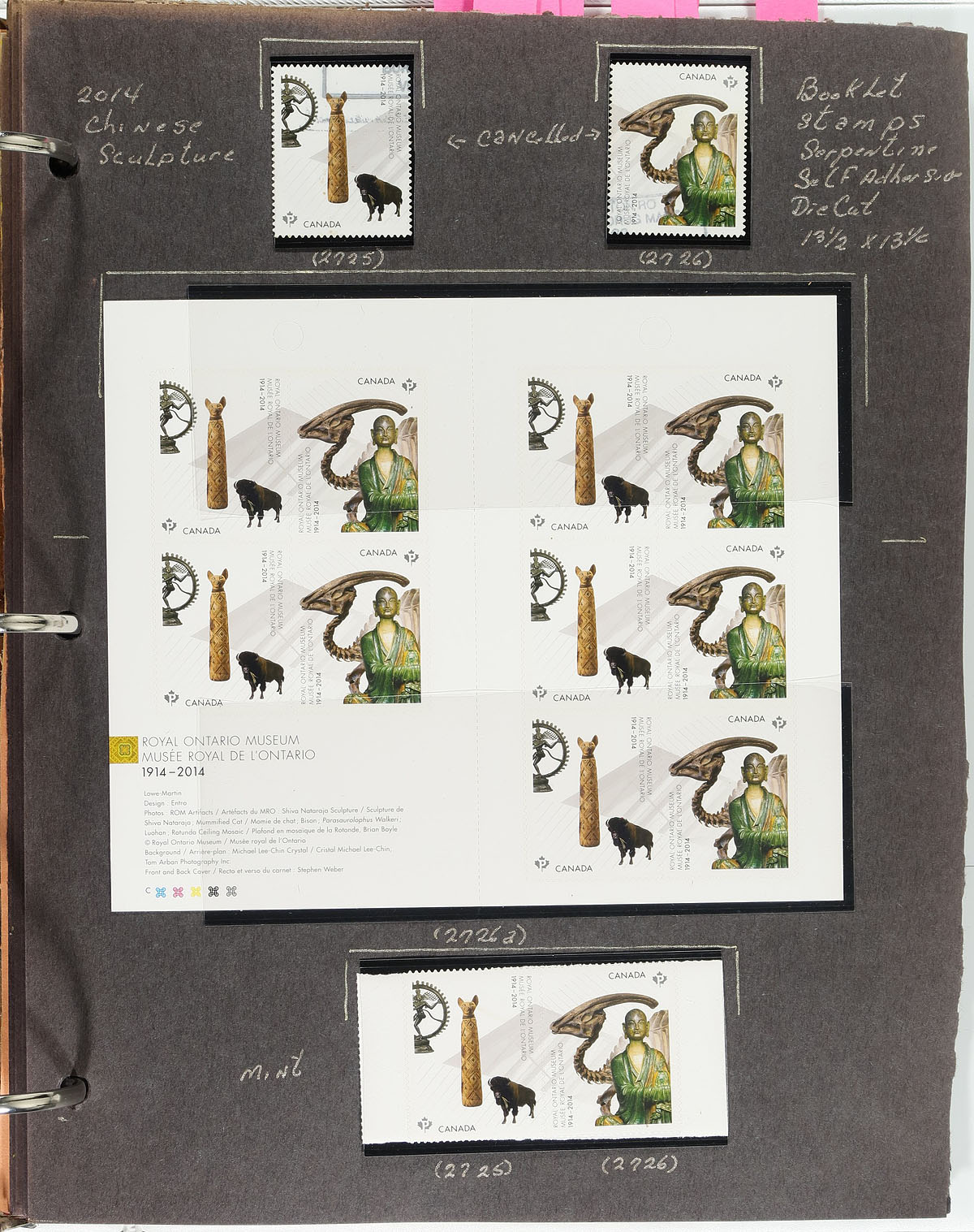 Collection of primarily mint never hinged Canada, from April to May 2014, covering Unitrade #s 2724-2738, all in hingeless mounts in roughly 15 well described pages, housed in a binder. The collection contains mint and used stamps (including booklet issues), booklets, souvenir sheets, coil singles, pairs, and strips of 4, and a few first day covers. We note a few items cataloguing $10.00 and up.. Face value alone totals $196.00 (including 124x "P" stamps). A nice lot for all collectors. 2024 Unitrade =