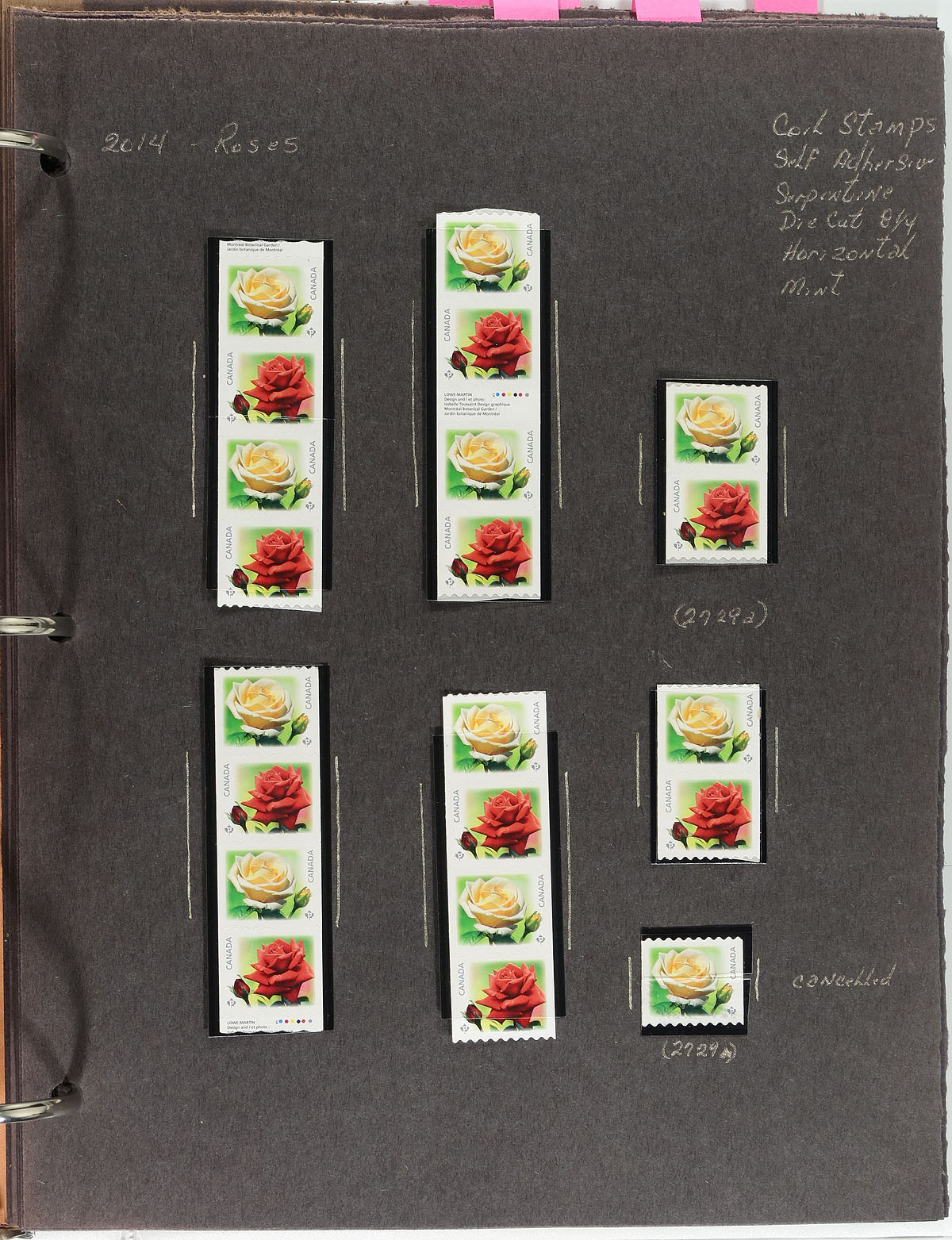 Collection of primarily mint never hinged Canada, from April to May 2014, covering Unitrade #s 2724-2738, all in hingeless mounts in roughly 15 well described pages, housed in a binder. The collection contains mint and used stamps (including booklet issues), booklets, souvenir sheets, coil singles, pairs, and strips of 4, and a few first day covers. We note a few items cataloguing $10.00 and up.. Face value alone totals $196.00 (including 124x "P" stamps). A nice lot for all collectors. 2024 Unitrade =