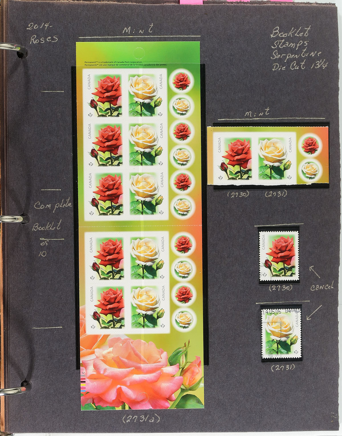 Collection of primarily mint never hinged Canada, from April to May 2014, covering Unitrade #s 2724-2738, all in hingeless mounts in roughly 15 well described pages, housed in a binder. The collection contains mint and used stamps (including booklet issues), booklets, souvenir sheets, coil singles, pairs, and strips of 4, and a few first day covers. We note a few items cataloguing $10.00 and up.. Face value alone totals $196.00 (including 124x "P" stamps). A nice lot for all collectors. 2024 Unitrade =