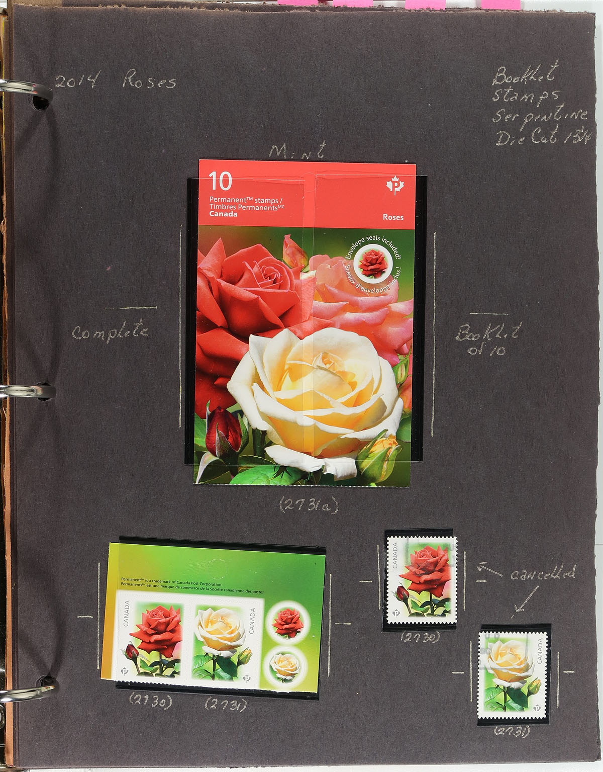 Collection of primarily mint never hinged Canada, from April to May 2014, covering Unitrade #s 2724-2738, all in hingeless mounts in roughly 15 well described pages, housed in a binder. The collection contains mint and used stamps (including booklet issues), booklets, souvenir sheets, coil singles, pairs, and strips of 4, and a few first day covers. We note a few items cataloguing $10.00 and up.. Face value alone totals $196.00 (including 124x "P" stamps). A nice lot for all collectors. 2024 Unitrade =
