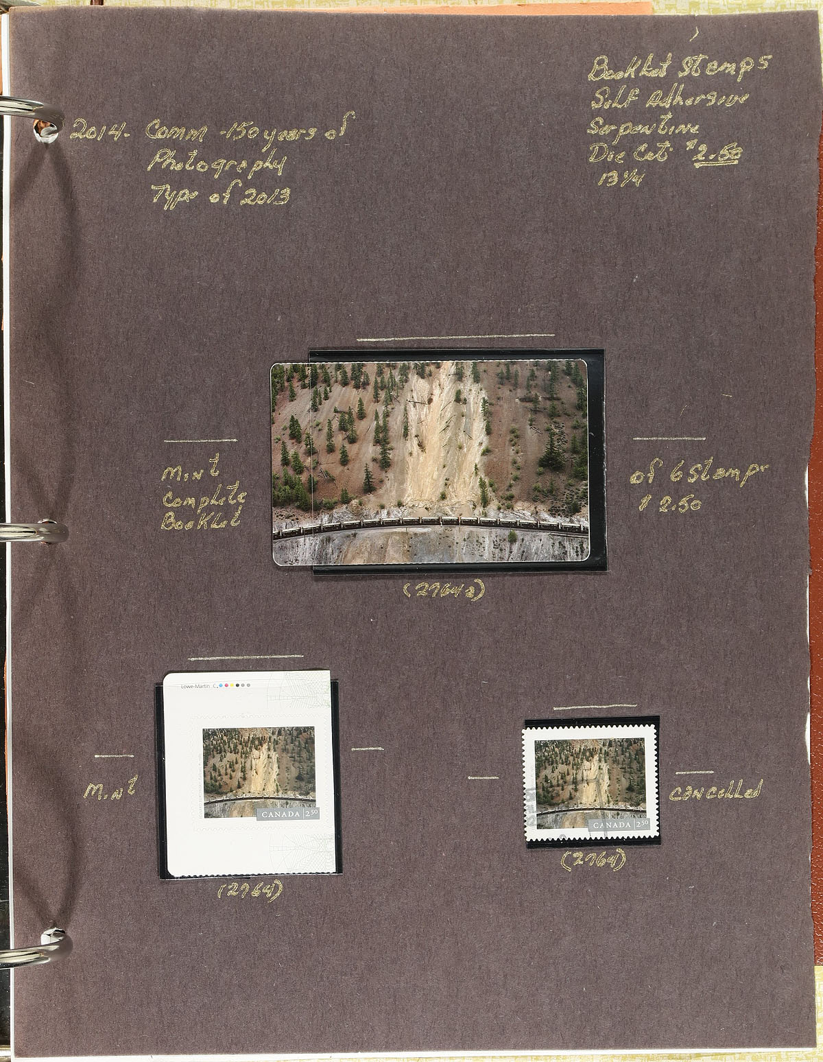 Lovely collection of primarily mint never hinged Canada, from June to July 2014, covering Unitrade #s 2748-2764, all in hingeless mounts in roughly 20 well described pages, housed in a binder. The collection contains mint and used stamps (including booklet issues), booklets, souvenir sheets, coil singles, pairs, and strips of 4, and a few first day covers. We note a few items cataloguing $10.00 and up. Face value alone totals $207.00 (including 137x "P" stamps). A nice lot for all collectors. 2024 Unitrade =