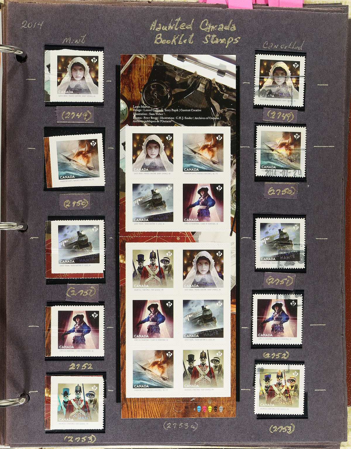 Lovely collection of primarily mint never hinged Canada, from June to July 2014, covering Unitrade #s 2748-2764, all in hingeless mounts in roughly 20 well described pages, housed in a binder. The collection contains mint and used stamps (including booklet issues), booklets, souvenir sheets, coil singles, pairs, and strips of 4, and a few first day covers. We note a few items cataloguing $10.00 and up. Face value alone totals $207.00 (including 137x "P" stamps). A nice lot for all collectors. 2024 Unitrade =