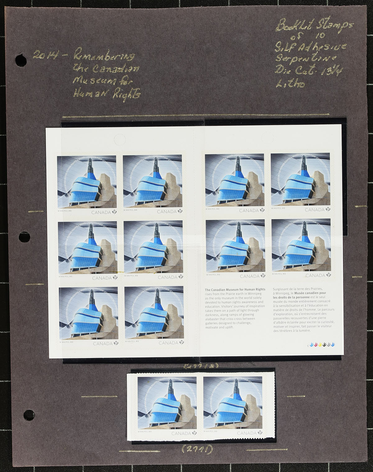 Collection of primarily mint never hinged Canada, August 2014, covering Unitrade #s 2771-2777, all in hingeless mounts in roughly 25 well described pages. The collection contains primarily complete booklets, part panes, mint and used booklet stamps, along with a few souvenir sheets and first day covers. We note a few items cataloguing $10.00 and up. Face value alone totals $205.00 (including 164x "P" stamps). A nice lot for all collectors. 2024 Unitrade =