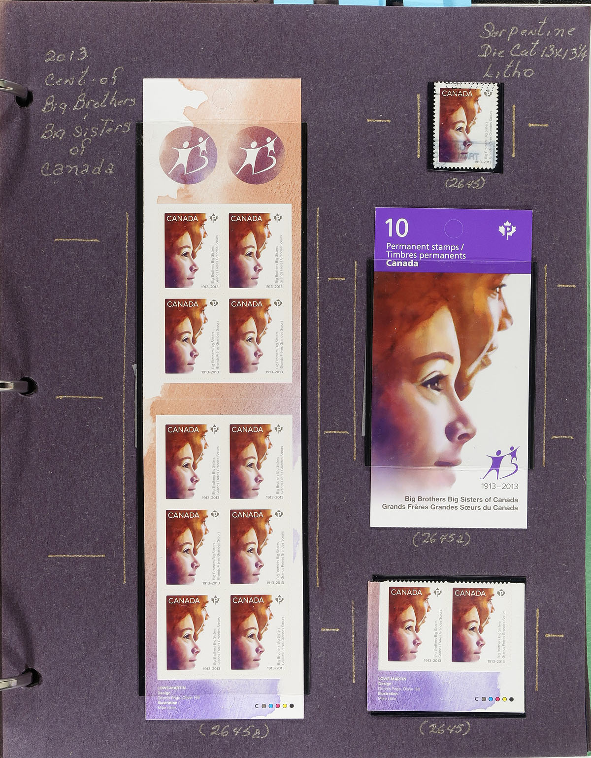Collection of primarily mint never hinged Canada, from April to June 2013, covering Unitrade #s 2635-2651, all in hingeless mounts in over 30 well described pages housed in a binder. The collection contains mint and used singles (including booklet stamps), souvenir sheets, sheetlets, matched plate blocks, booklets, and a few first day covers. We note several items cataloguing $10.00 and up. Face value alone totals $352.00 (including 284x "P" stamps). A terrific lot for all collectors. 2024 Unitrade =