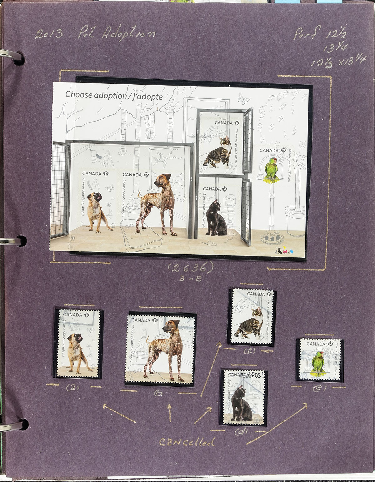 Collection of primarily mint never hinged Canada, from April to June 2013, covering Unitrade #s 2635-2651, all in hingeless mounts in over 30 well described pages housed in a binder. The collection contains mint and used singles (including booklet stamps), souvenir sheets, sheetlets, matched plate blocks, booklets, and a few first day covers. We note several items cataloguing $10.00 and up. Face value alone totals $352.00 (including 284x "P" stamps). A terrific lot for all collectors. 2024 Unitrade =
