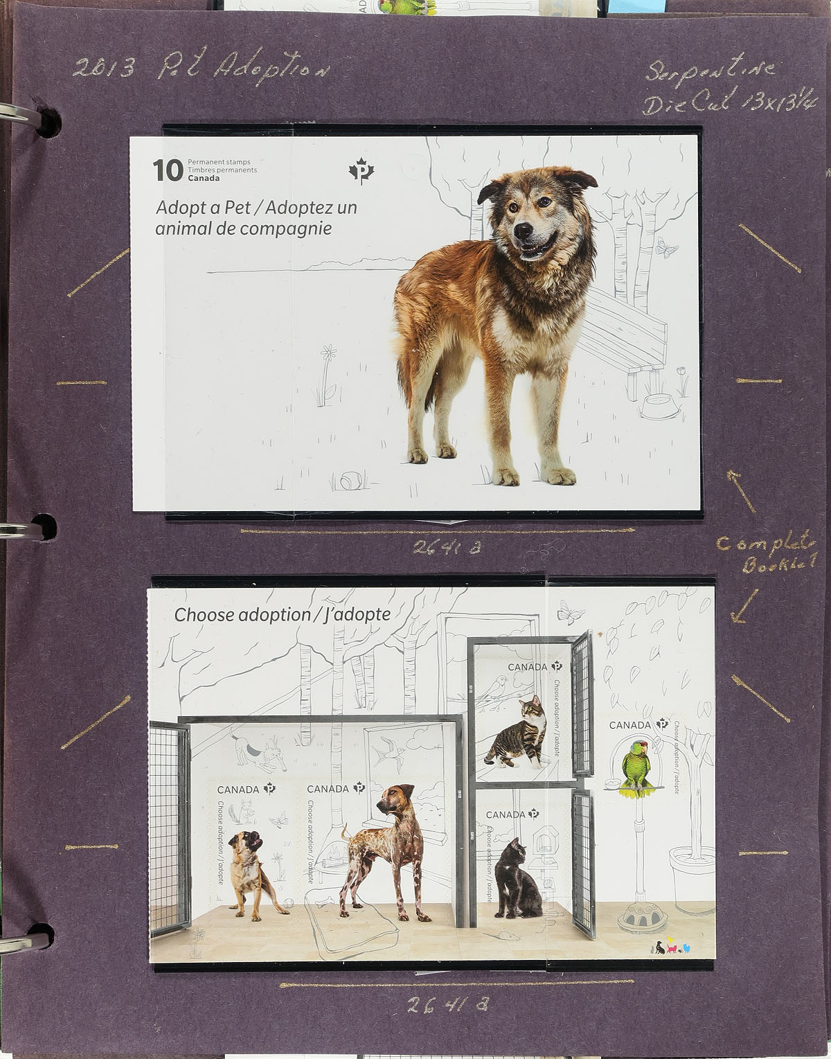 Collection of primarily mint never hinged Canada, from April to June 2013, covering Unitrade #s 2635-2651, all in hingeless mounts in over 30 well described pages housed in a binder. The collection contains mint and used singles (including booklet stamps), souvenir sheets, sheetlets, matched plate blocks, booklets, and a few first day covers. We note several items cataloguing $10.00 and up. Face value alone totals $352.00 (including 284x "P" stamps). A terrific lot for all collectors. 2024 Unitrade =