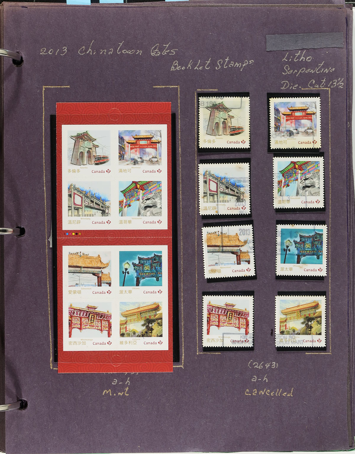Collection of primarily mint never hinged Canada, from April to June 2013, covering Unitrade #s 2635-2651, all in hingeless mounts in over 30 well described pages housed in a binder. The collection contains mint and used singles (including booklet stamps), souvenir sheets, sheetlets, matched plate blocks, booklets, and a few first day covers. We note several items cataloguing $10.00 and up. Face value alone totals $352.00 (including 284x "P" stamps). A terrific lot for all collectors. 2024 Unitrade =