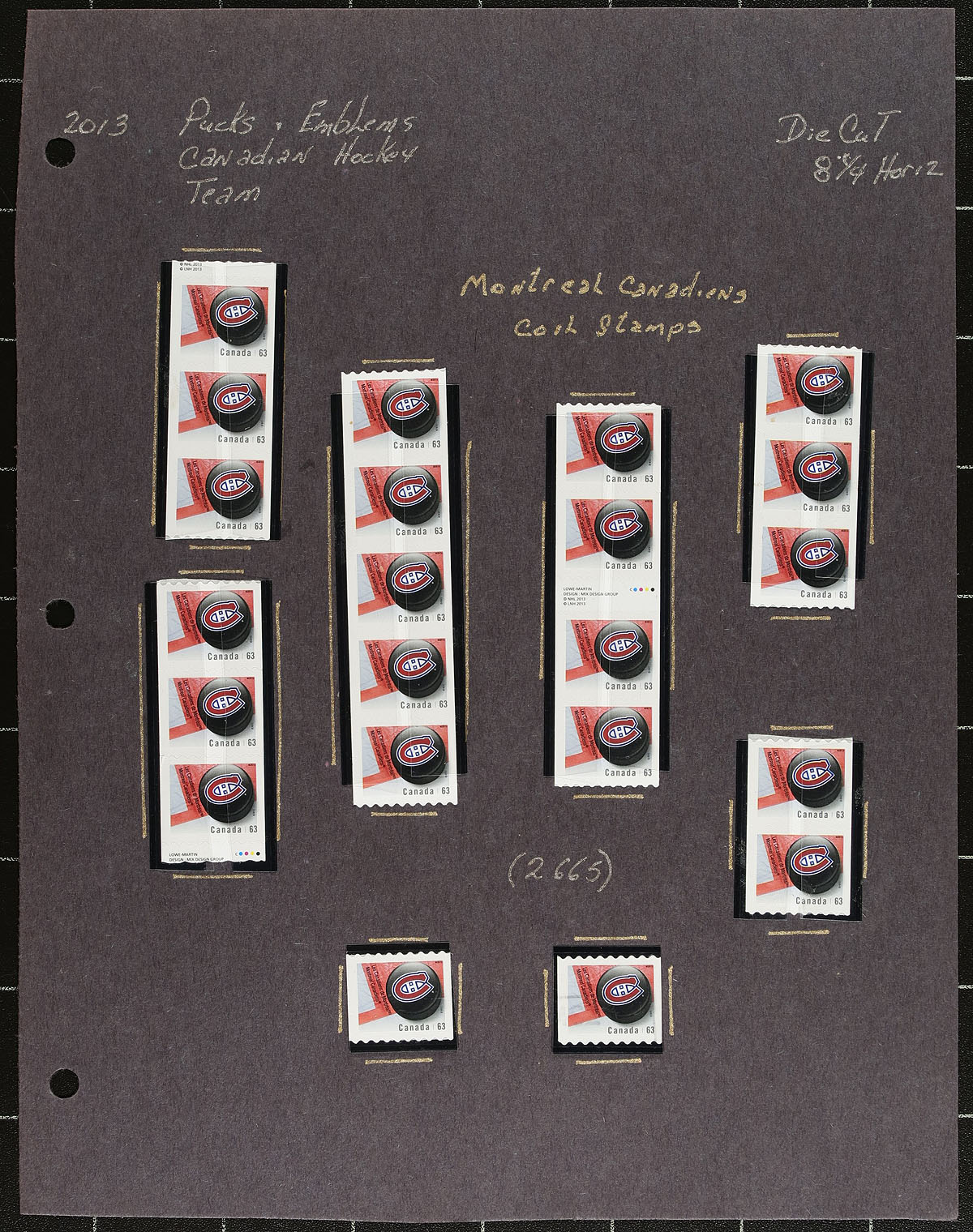 Attractive and seldom seen collection of primarily mint never hinged "NHL Team Logos", September 2013, covering Unitrade #s 2661-2668, all in hingelss mounts on 11 well described pages. The lot contains almost exclusively coil singles, pairs, and strips of 4 for each issue, along with a mint and used souvenir sheet. Face value alone totals $114. A great lot for Canada and topical collectors. Undervalued in the catalogue! 2024 Unitrade =