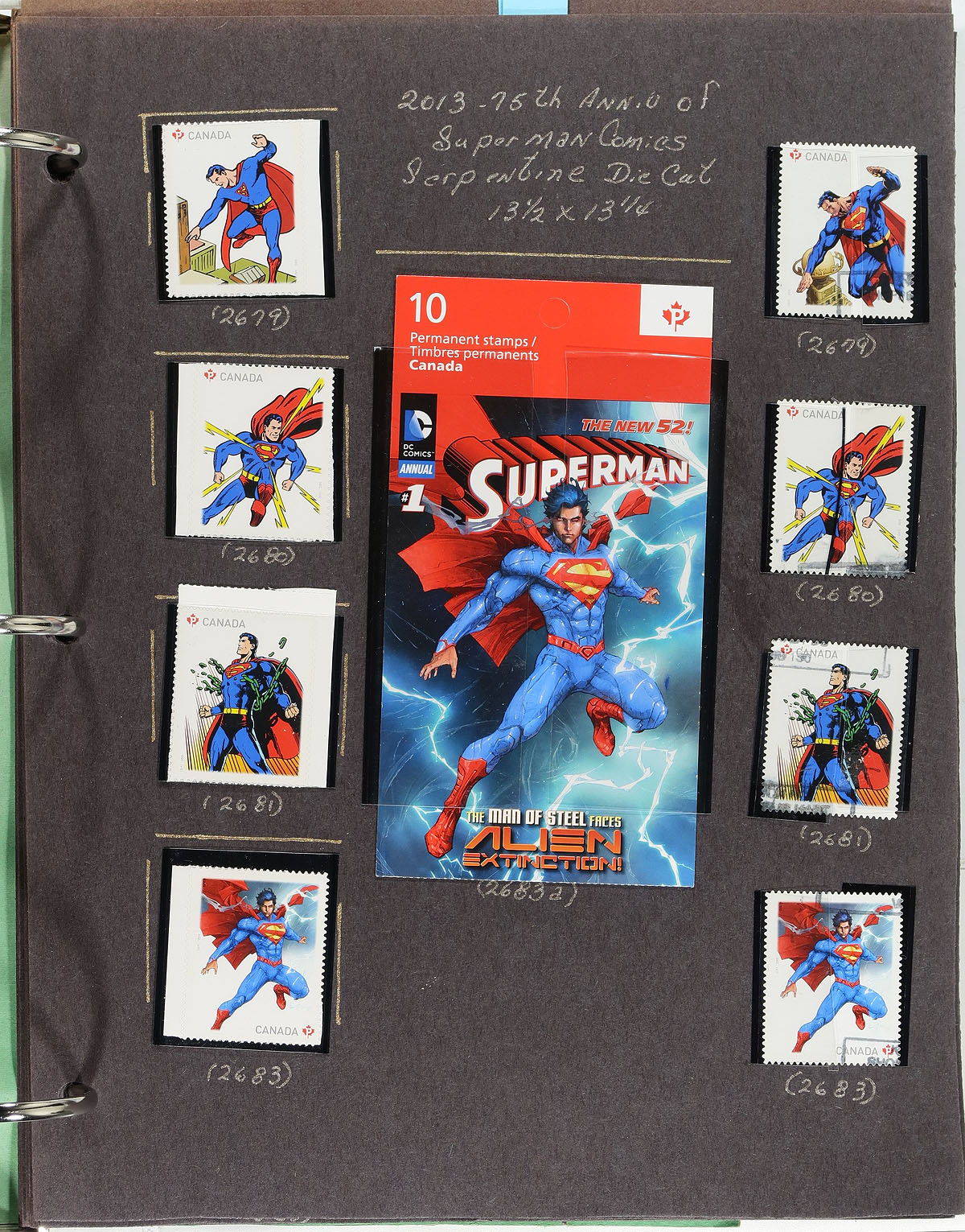 Lovely collection of primarily mint never hinged Canada, from September to October 2013, covering Unitrade #s 2677-2686, all in hingeless mounts in over 20 well described pages. The collection contains mostly booklets and part panes, along with mint and used souvenir sheet, coil singles, and a few first day covers. We note several items cataloguing $10.00 and up. Face value alone totals $185.00. A terrific lot for all collectors. 2024 Unitrade =