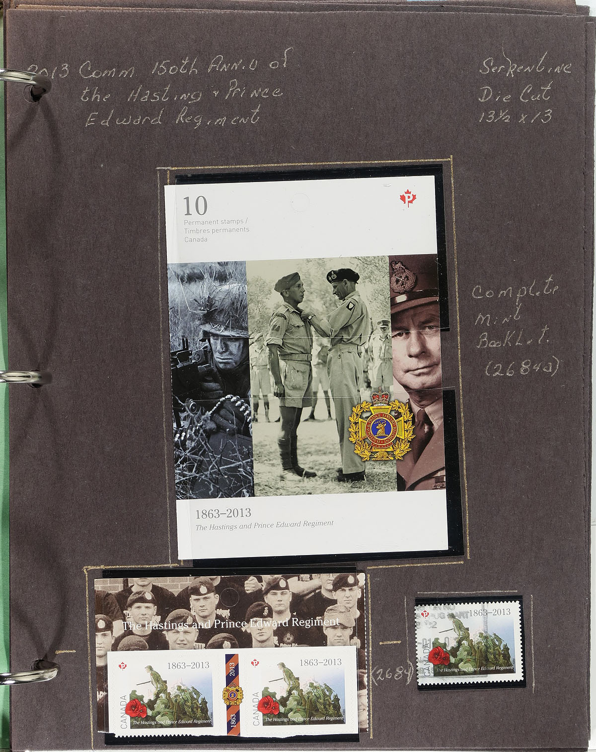 Lovely collection of primarily mint never hinged Canada, from September to October 2013, covering Unitrade #s 2677-2686, all in hingeless mounts in over 20 well described pages. The collection contains mostly booklets and part panes, along with mint and used souvenir sheet, coil singles, and a few first day covers. We note several items cataloguing $10.00 and up. Face value alone totals $185.00. A terrific lot for all collectors. 2024 Unitrade =