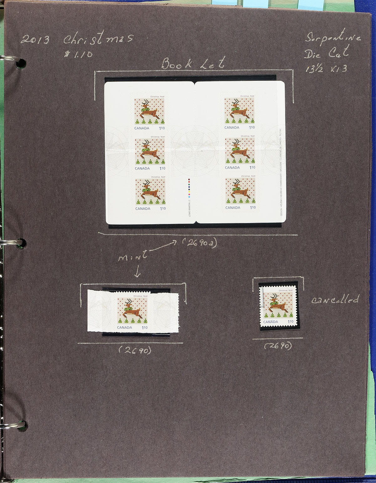 Lovely collection of primarily mint never hinged "Christmas" issues, October 2013, covering Unitrade #s 2687-2691, all in hingless mounts in 15 well described pages. The collection contains primarily complete booklets, and mint and used booklet stamps, along with a few souvenir sheets and first day covers. Face value alone totals $130.00. A lovely collection for Christmas and Canada collectors. 2024 Unitrade =
