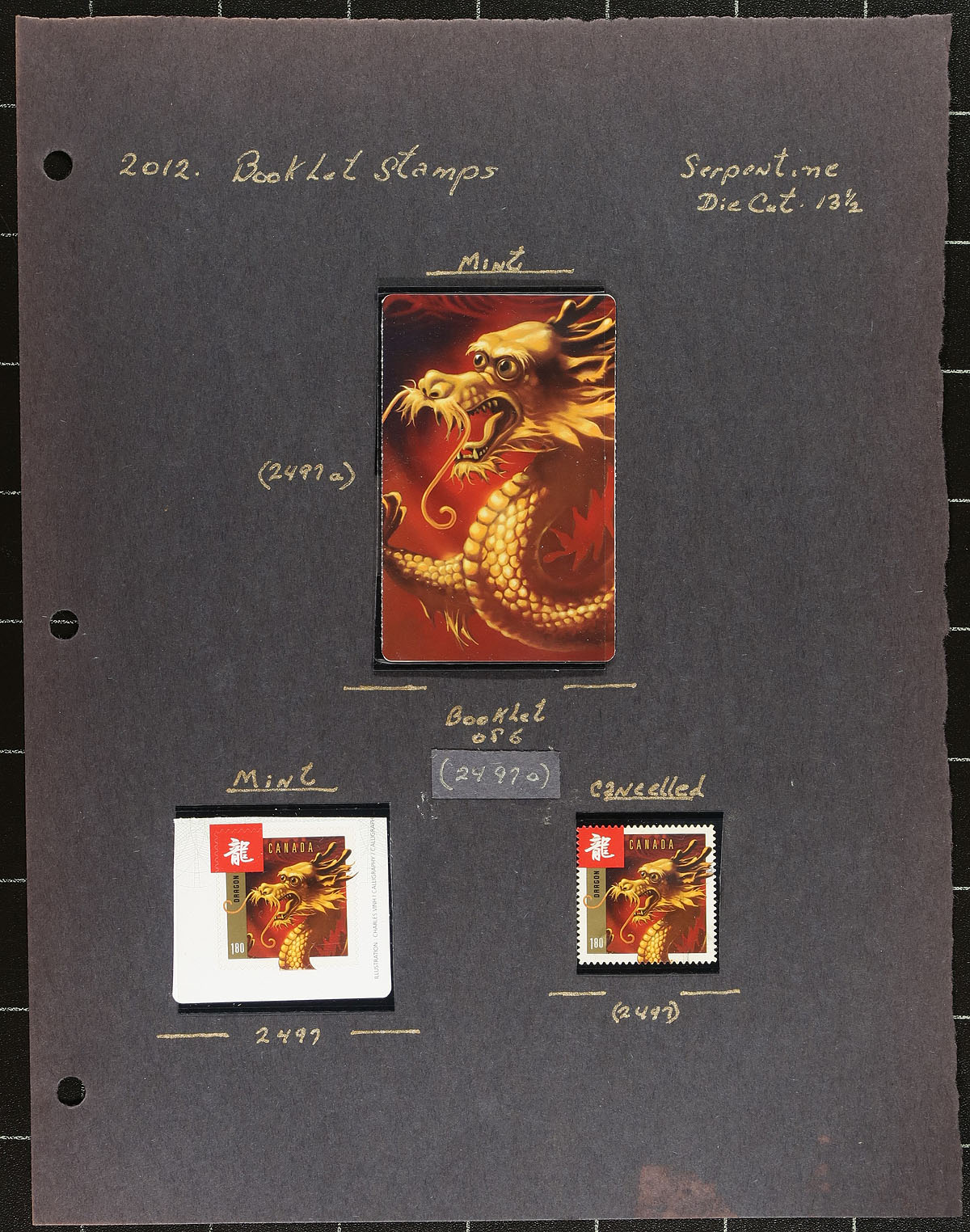 Collection of primarily mint never hinged Canada, from January 2012, covering Unitrade #s 2495-2497, 2505-2509, all in hingeless mounts in over 20 well described pages. The collection contains "Year of the Dragon" and "Baby Wildlife" coil definitives noting mint and used singles (including booklet stamps), matched set of plate blocks, along with a few souvenir sheets, coil singles, pairs, strips of 4, booklets, and first day covers. We note a few items cataloguing $10.0 and up. Face value alone totals $129.00 (including 39x "P" stamps). A nice group for all collectors. 2024 Unitrade =