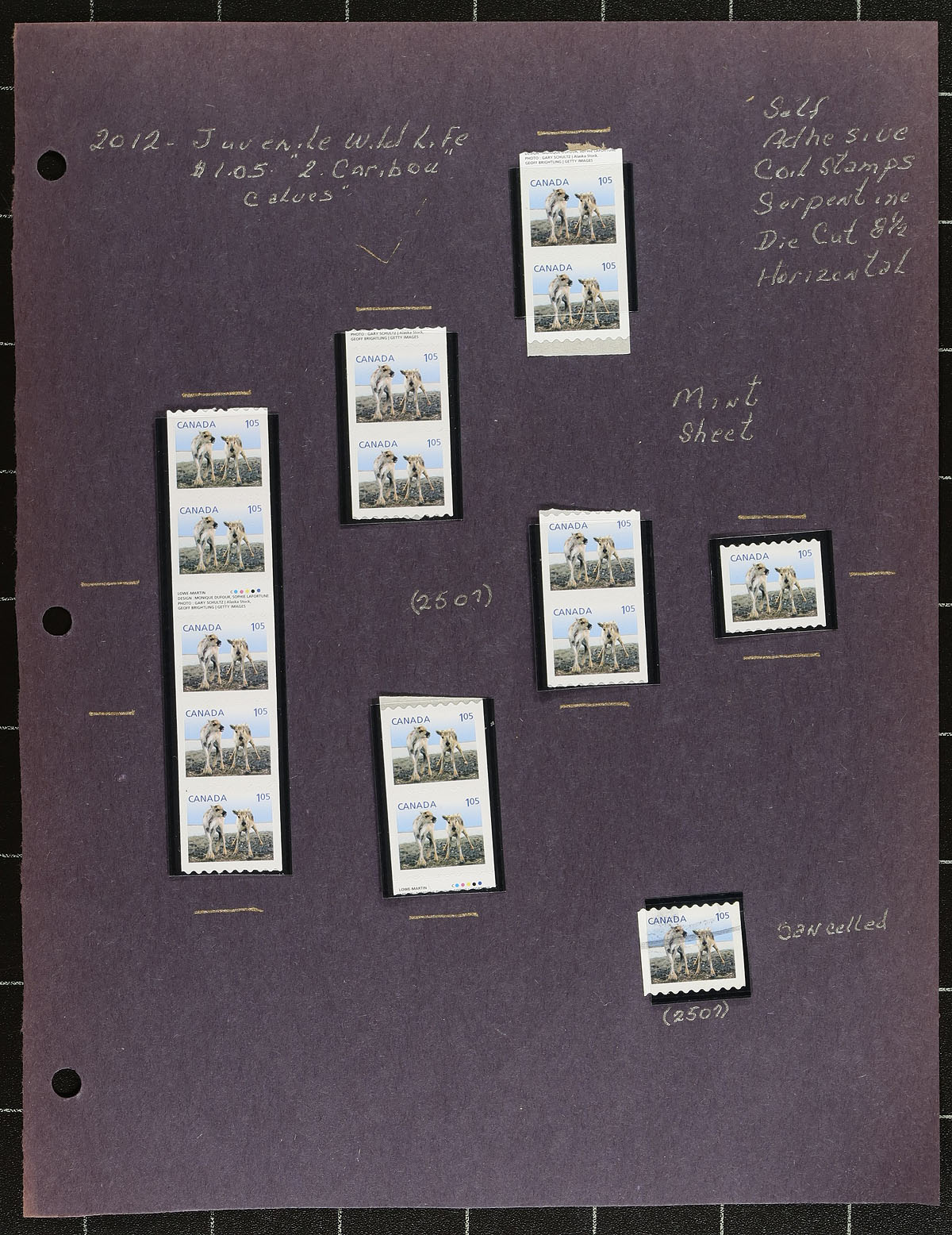 Collection of primarily mint never hinged Canada, from January 2012, covering Unitrade #s 2495-2497, 2505-2509, all in hingeless mounts in over 20 well described pages. The collection contains "Year of the Dragon" and "Baby Wildlife" coil definitives noting mint and used singles (including booklet stamps), matched set of plate blocks, along with a few souvenir sheets, coil singles, pairs, strips of 4, booklets, and first day covers. We note a few items cataloguing $10.0 and up. Face value alone totals $129.00 (including 39x "P" stamps). A nice group for all collectors. 2024 Unitrade =