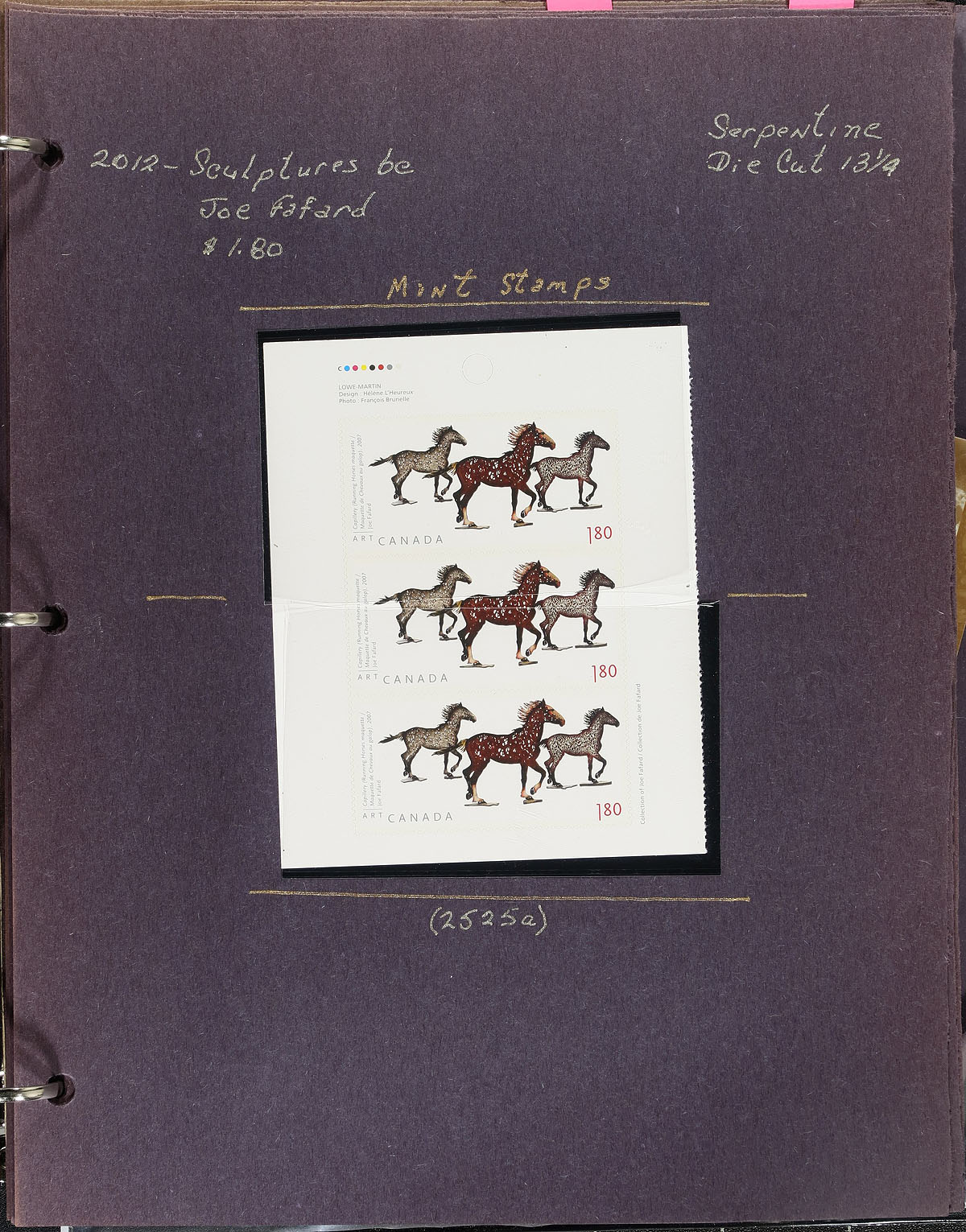 Collection of primarily mint never hinged Canada, from January to February of 2012, covering Unitrade #s 2512/2525 (missing only a few issues), all in hingeless mounts in over 30 well described pages housed in a binder. The collection contains mint and used singles, souvenir sheets, booklets, and a few first day covers. We note a few items cataloguing $10.00 and up. Face value alone totals $257.00 (including 154x "P" stamps). A nice group for all collectors. 2024 Unitrade =