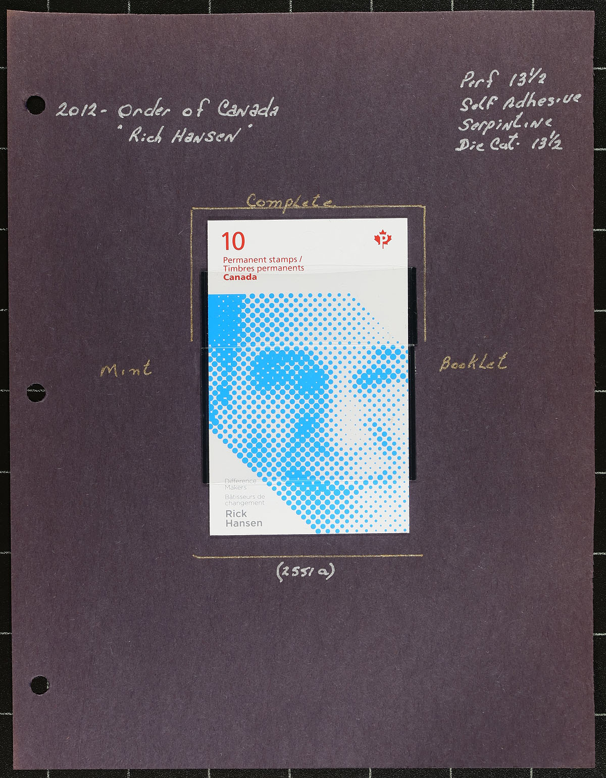 In-depth collection of primarily mint never hinged "Difference Makers" issues, May 2012, covering Unitrade #s 2549-2553, all in hingeless mounts in roughly 20 well described pages. The collection contains a mint and used souvenir sheet, along with 2 complete booklets for each issue, along with mint and used singles, and a few first day covers. We note a few items cataloguing $10.00 and up. Face value alone totals $124.00 (including 100x "P" stamps). A nice group for all collectors. Undervalued, especially compared to the face value. 2024 Unitrade =