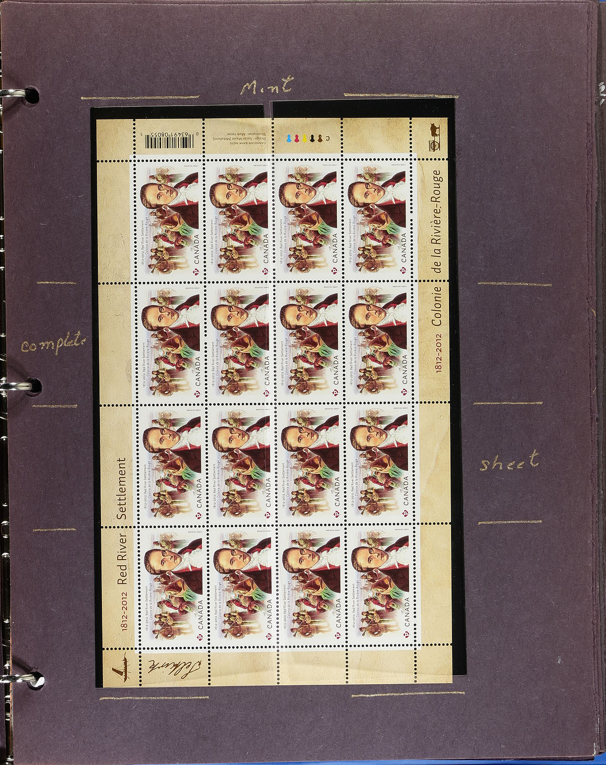 Lovely collection of primarily mint never hinged Canada, May 2012, covering Unitrade #s 2539-2548, all in hingeless mounts in roughly 30 well described pages housed in a binder. The collection contains mint and used singles, souvenir sheets (mint and used), sheetlets, booklets, and a few first day covers. We note a few items cataloguing $10.00 and up. Face value alone totals $176.00 (including 118x "P" stamps). A nice group for all collectors. 2024 Unitrade =
