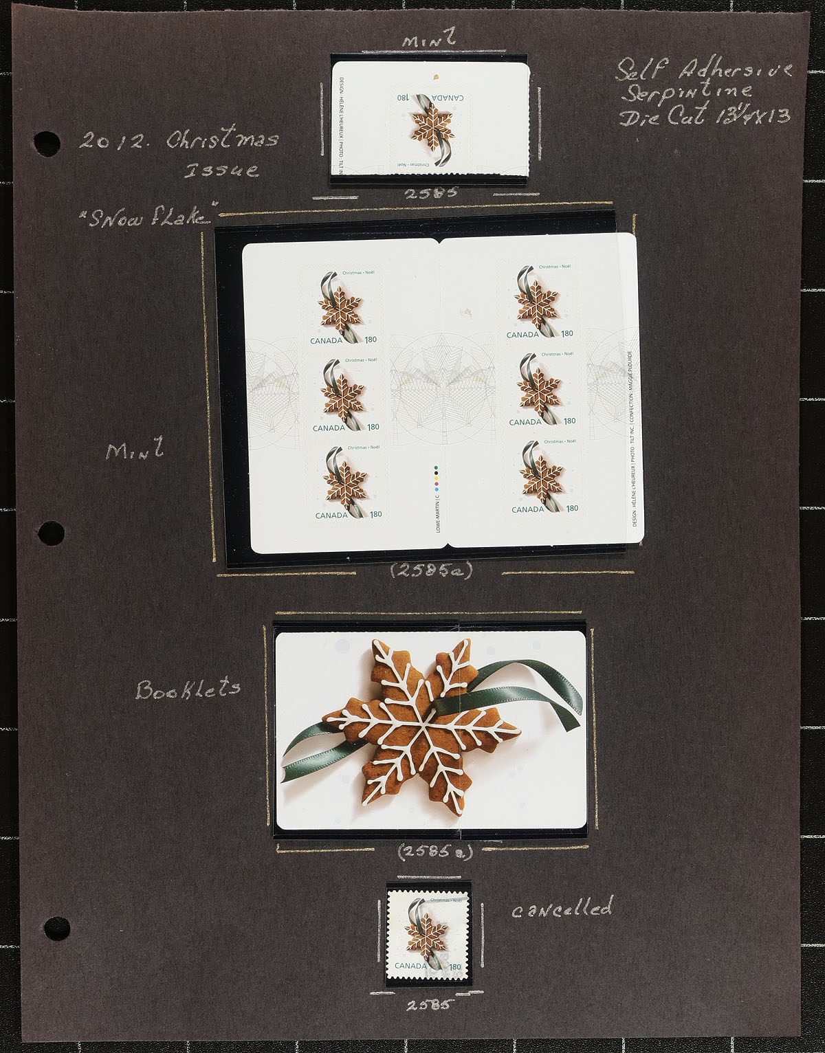Lovely collection of primarily mint never hinged "Christmas" issues, October 2012, covering Unitrade #s 2581-2582, all in hingeless mounts in a roughly 10 well described pages. The collection contains mint and used singles, mint and used souvenir sheet, booklets, and a few first day covers. Face value alone totals $131.00 (including 65x "P" stamps). A nice group for all collectors. 2024 Unitrade =