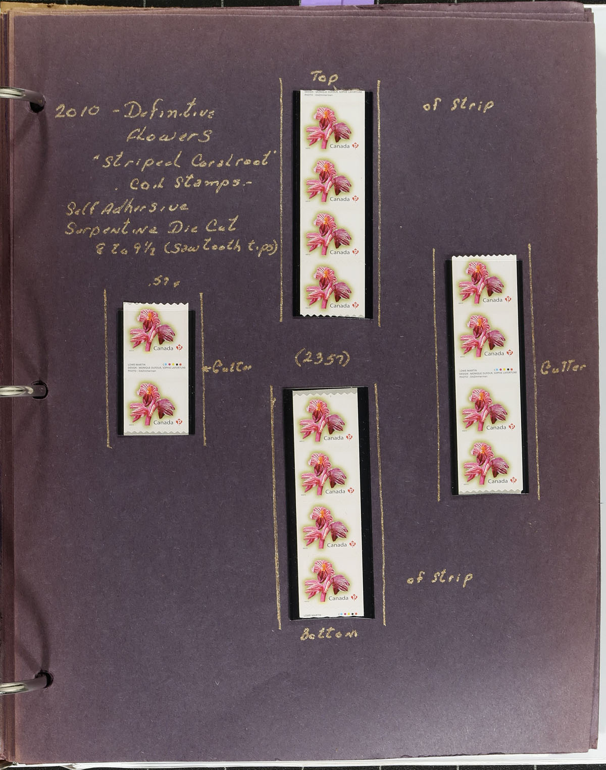 Attractive collection of primarily mint never hinged "Flower" and First Class defintives, January 2010, covering Unitrade #s 2350-2365, all in hingeless mounts in over 20 well described pages, housed in a binder. The collection contains mint and used singles (including booklet stamps), coil singles, pairs, and strips of 4, booklets, souvenir sheets (mint and used), and roughly 30 first day covers (most having Lower Mainland and Vancouver postmarks from several different outlets). We note a few items cataloguing $15.00 and up. Face value alone totals $224.00 (including 89x "P" stamps). A nice collection that would be difficult to duplicate. 2024 Unitrade =
