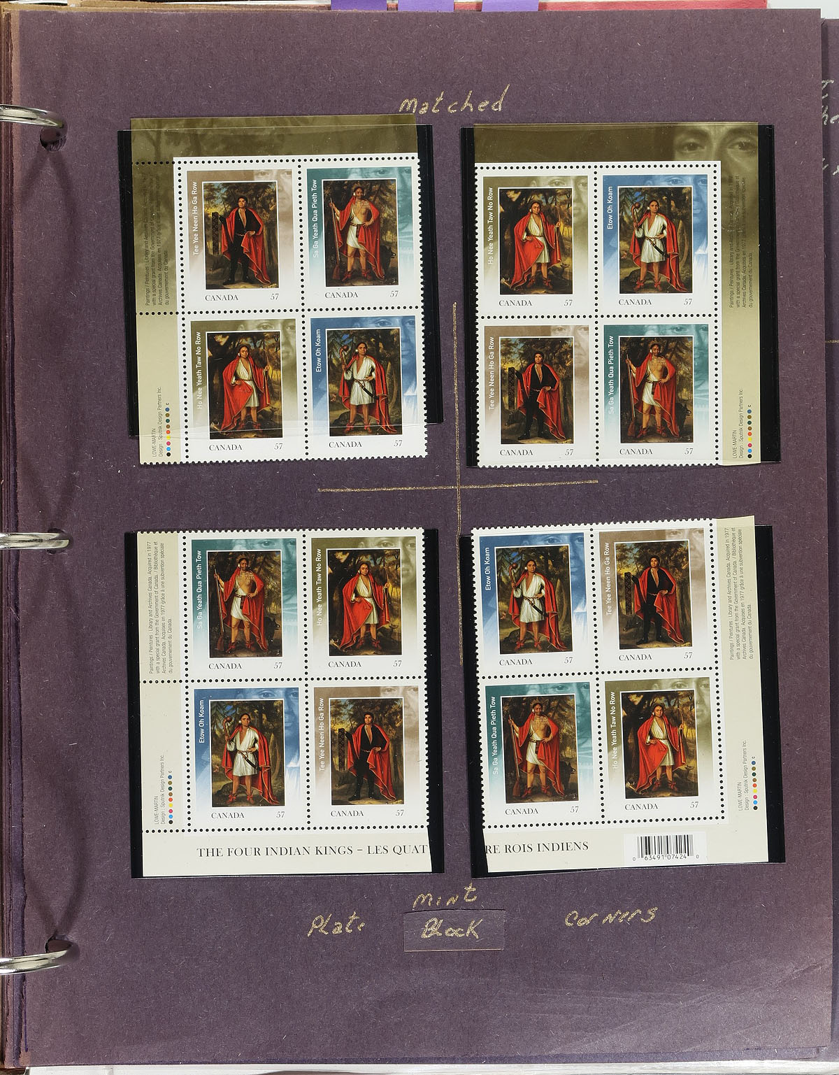 In-depth collection of primarily mint never hinged Canada, from January to May of 2010, covering Unitrade #s 2366-2386, all in hingeless mounts in over 50 well described pages, housed in a binder. The collection contains mint and used singles (including booklet stamps), multiples, matched set of plate blocks (including used sets), for some issues, along with a few souvenir sheets and sheetlets, booklets, and first day covers. We note some match sets cataloguing $10 and up, with a Unitrade 2024 catalogue value for the collection totaling $484. Duplication up to 1 for a few issues. Face value alone totals $221 (including 24x "P" stamps, counted at $1.24 each). A nice comprehensive collection that would be difficult to duplicate.