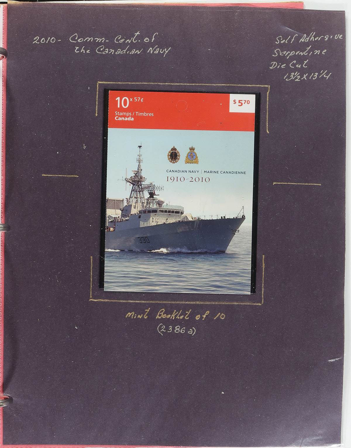 In-depth collection of primarily mint never hinged Canada, from January to May of 2010, covering Unitrade #s 2366-2386, all in hingeless mounts in over 50 well described pages, housed in a binder. The collection contains mint and used singles (including booklet stamps), multiples, matched set of plate blocks (including used sets), for some issues, along with a few souvenir sheets and sheetlets, booklets, and first day covers. We note some match sets cataloguing $10 and up, with a Unitrade 2024 catalogue value for the collection totaling $484. Duplication up to 1 for a few issues. Face value alone totals $221 (including 24x "P" stamps, counted at $1.24 each). A nice comprehensive collection that would be difficult to duplicate.