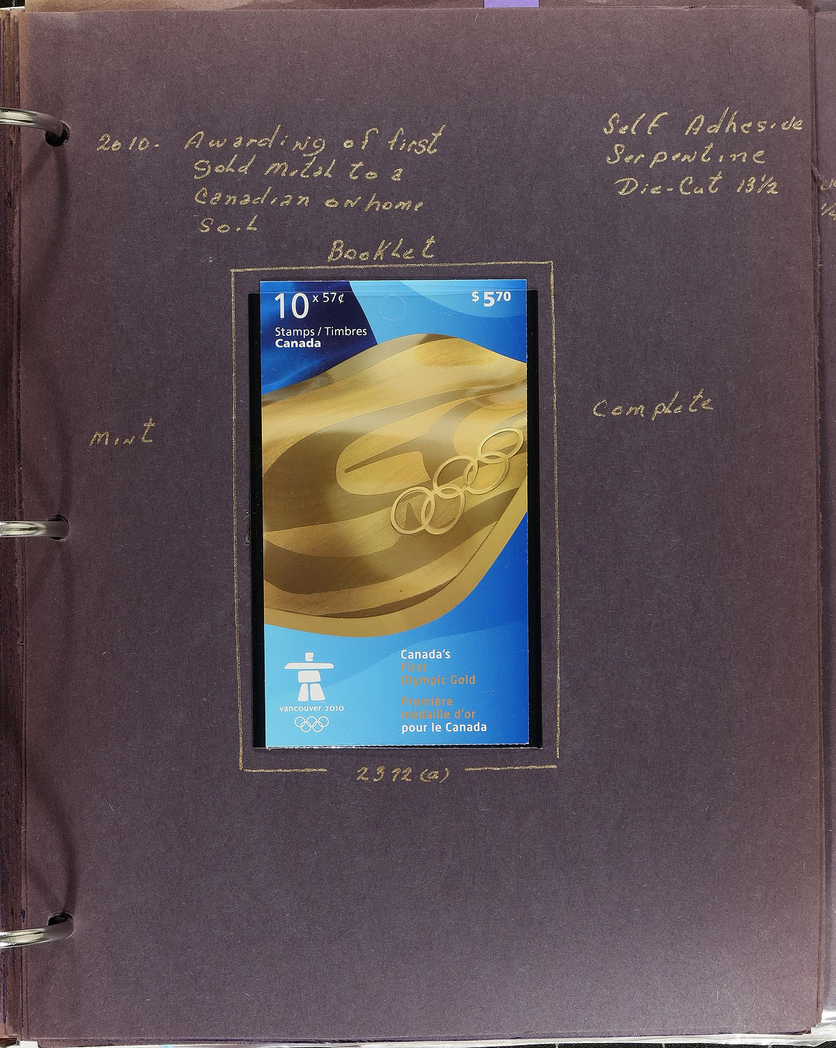 In-depth collection of primarily mint never hinged Canada, from January to May of 2010, covering Unitrade #s 2366-2386, all in hingeless mounts in over 50 well described pages, housed in a binder. The collection contains mint and used singles (including booklet stamps), multiples, matched set of plate blocks (including used sets), for some issues, along with a few souvenir sheets and sheetlets, booklets, and first day covers. We note some match sets cataloguing $10 and up, with a Unitrade 2024 catalogue value for the collection totaling $484. Duplication up to 1 for a few issues. Face value alone totals $221 (including 24x "P" stamps, counted at $1.24 each). A nice comprehensive collection that would be difficult to duplicate.