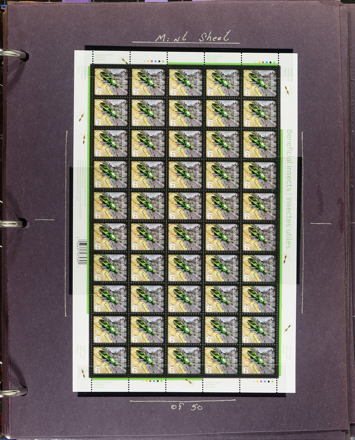 In-depth collection of primarily mint never hinged low value "Beneficial Insects" definitives and "Christmas" issues, October to November of 2010, covering Unitrade #s 2406-2415, all in hingeless mounts in over 50 well described pages, housed in a binder. The collection contains a mint and used singles (including booklet stamps), multiples, matched set of plate blocks (mint and used), for most issues, along with sheetlets, booklets, and first day covers. Face value alone totals $150.00 (including 53x "P" stamps). A nice collection that would be difficult to duplicate. 2024 Unitrade =