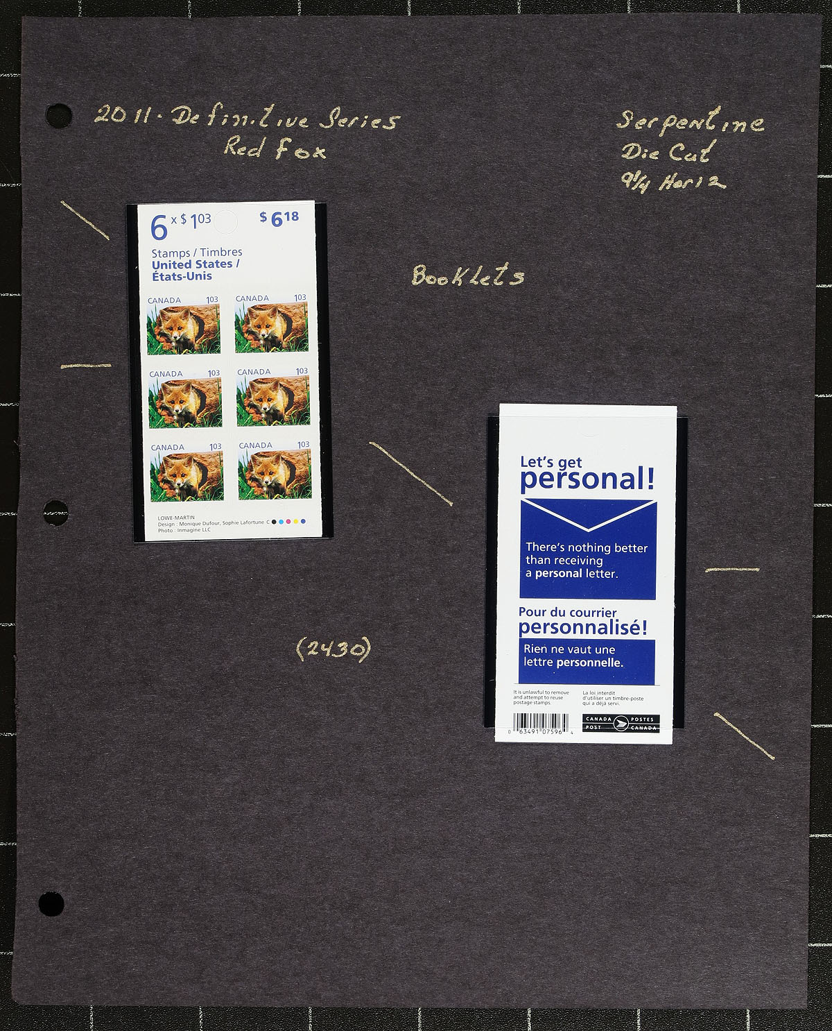 Lovely collection of primarily mint never hinged "Baby Wildlife" and First Class defintives, January 2011, covering Unitrade #s 2418-2432, all in hingeless mounts in over 20 well described pages. The collection contains mint and used singles (including booklet stamps), coil pairs, and strips of 4, booklets, souvenir sheets (mint and used), and a few first day covers. We note a few items cataloguing $15.00 and up. Face value alone totals $176.00 (including 74x "P" stamps). A nice collection that would satisfy all collectors. 2024 Unitrade =