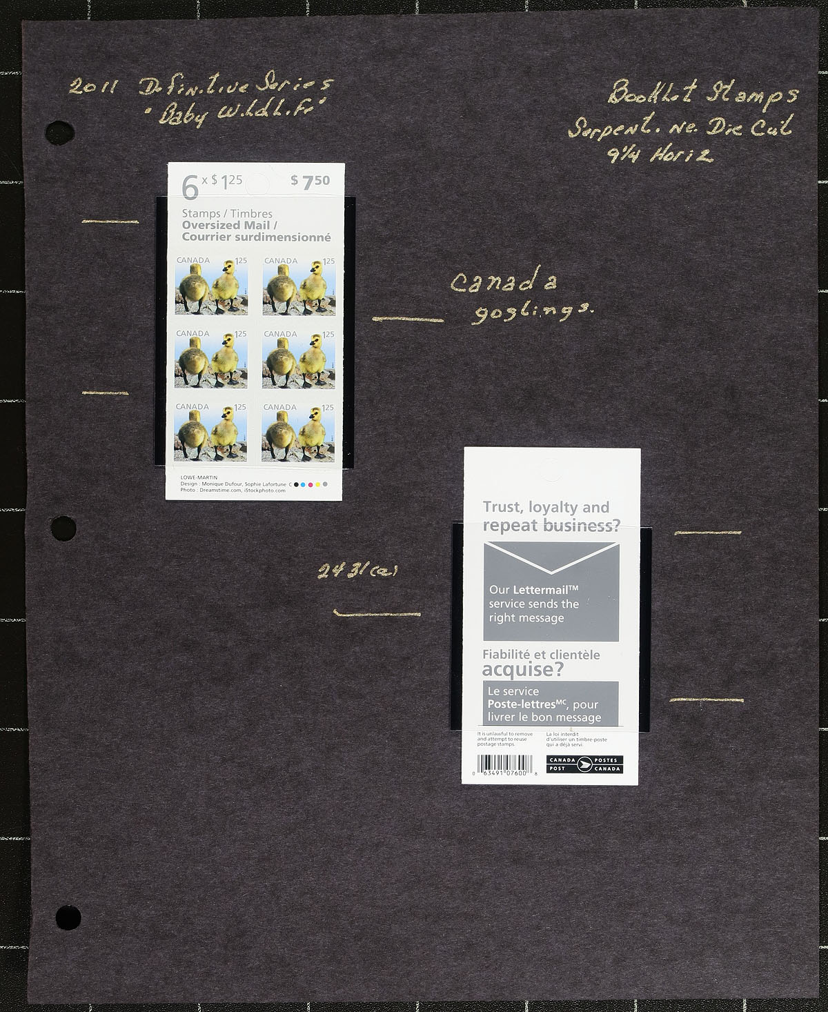Lovely collection of primarily mint never hinged "Baby Wildlife" and First Class defintives, January 2011, covering Unitrade #s 2418-2432, all in hingeless mounts in over 20 well described pages. The collection contains mint and used singles (including booklet stamps), coil pairs, and strips of 4, booklets, souvenir sheets (mint and used), and a few first day covers. We note a few items cataloguing $15.00 and up. Face value alone totals $176.00 (including 74x "P" stamps). A nice collection that would satisfy all collectors. 2024 Unitrade =